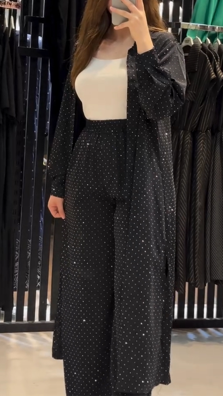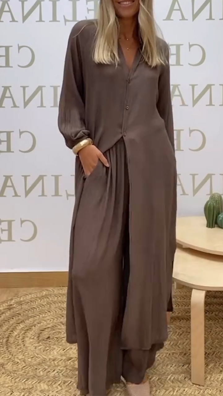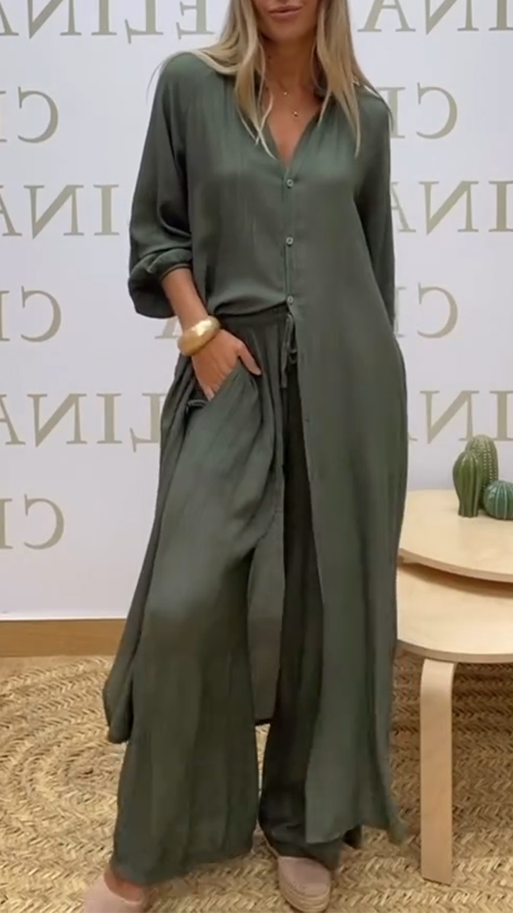 Women's Round Neck Long Button Cardigan + Trousers Casual Suit