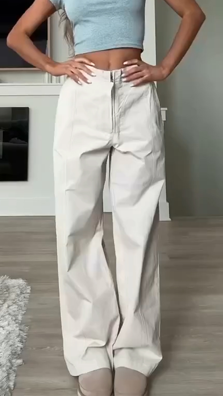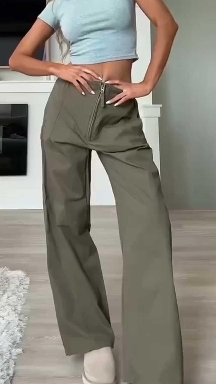 Women's Zipper Elastic Waist Casual Trousers