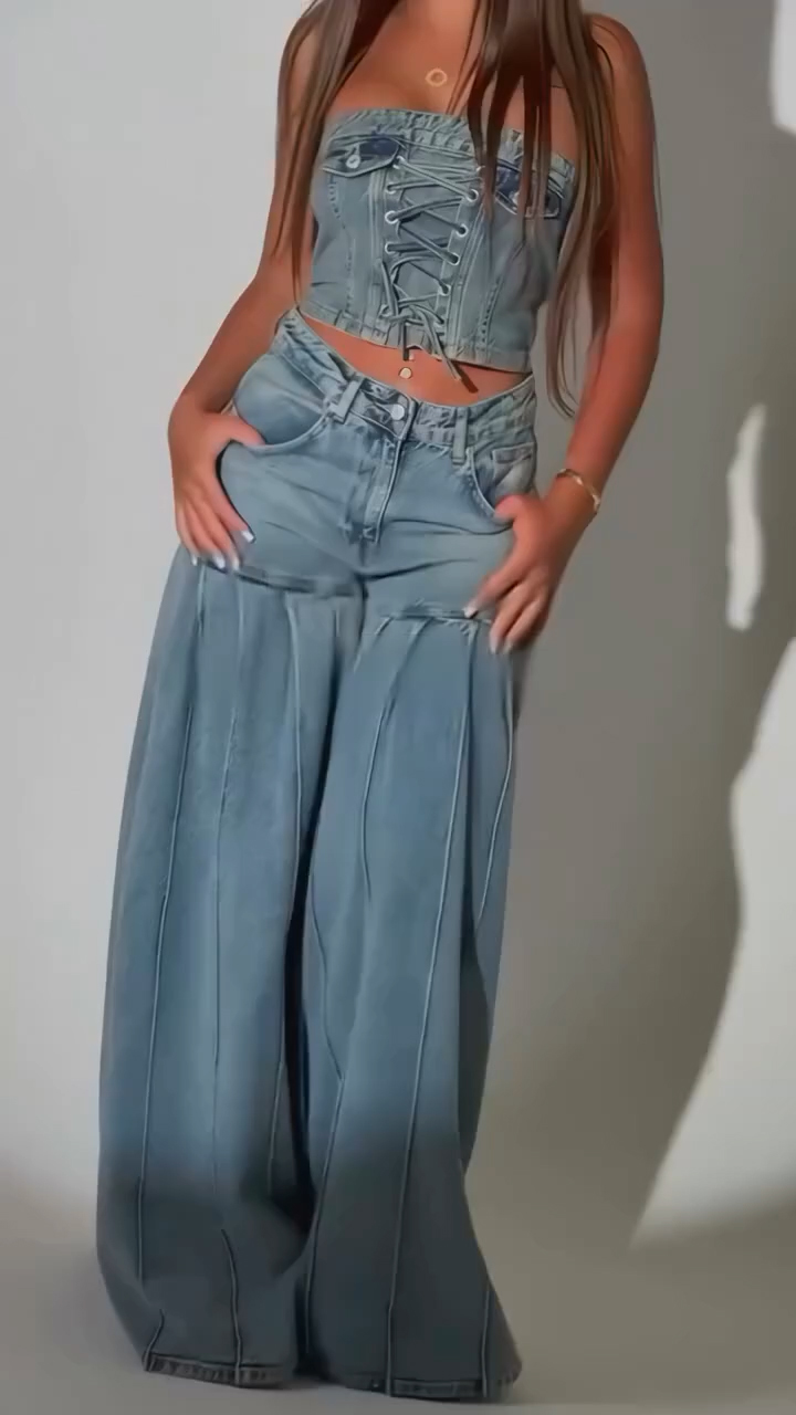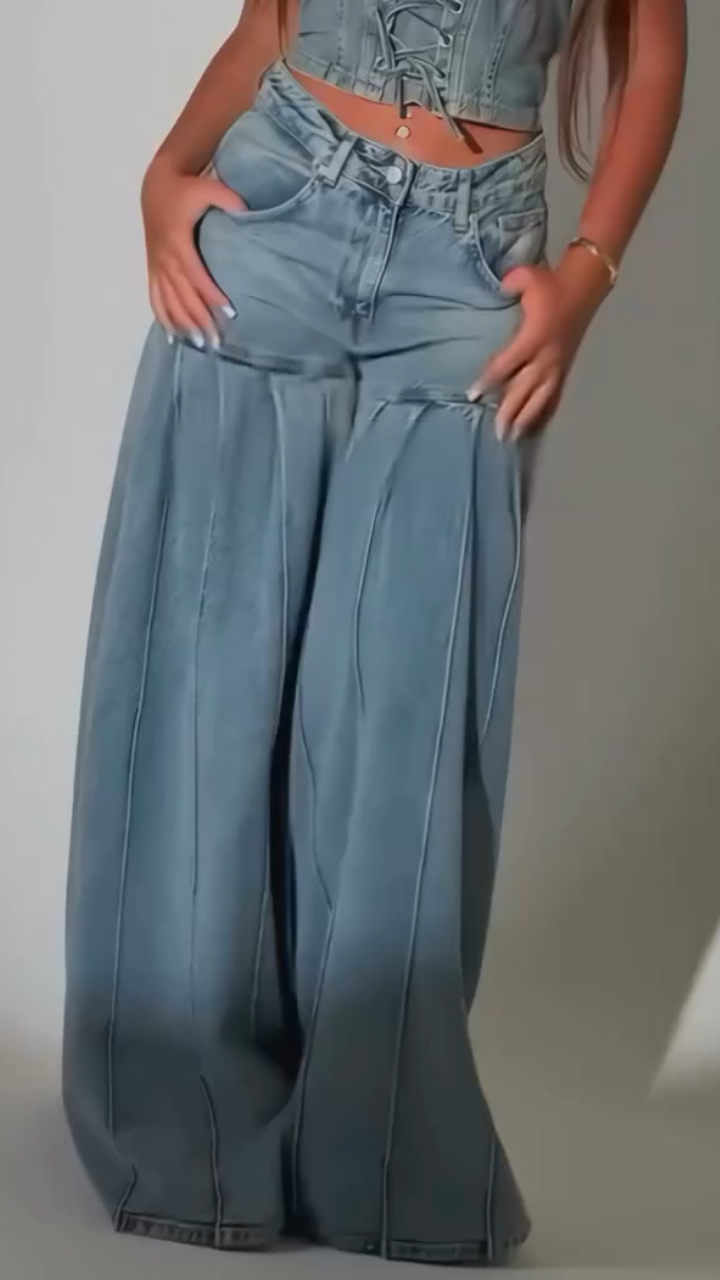 Women's Pleated Patchwork Casual Wide-leg Jeans