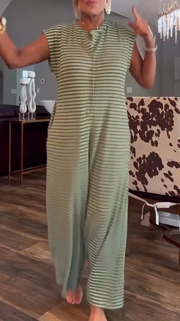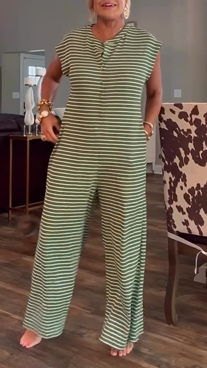 Ladies' Round Neck Striped Casual Jumpsuit