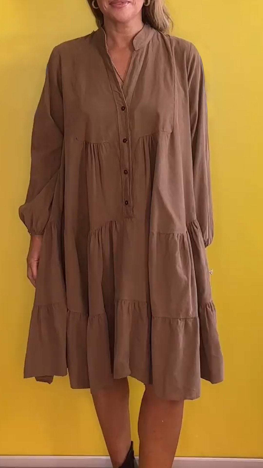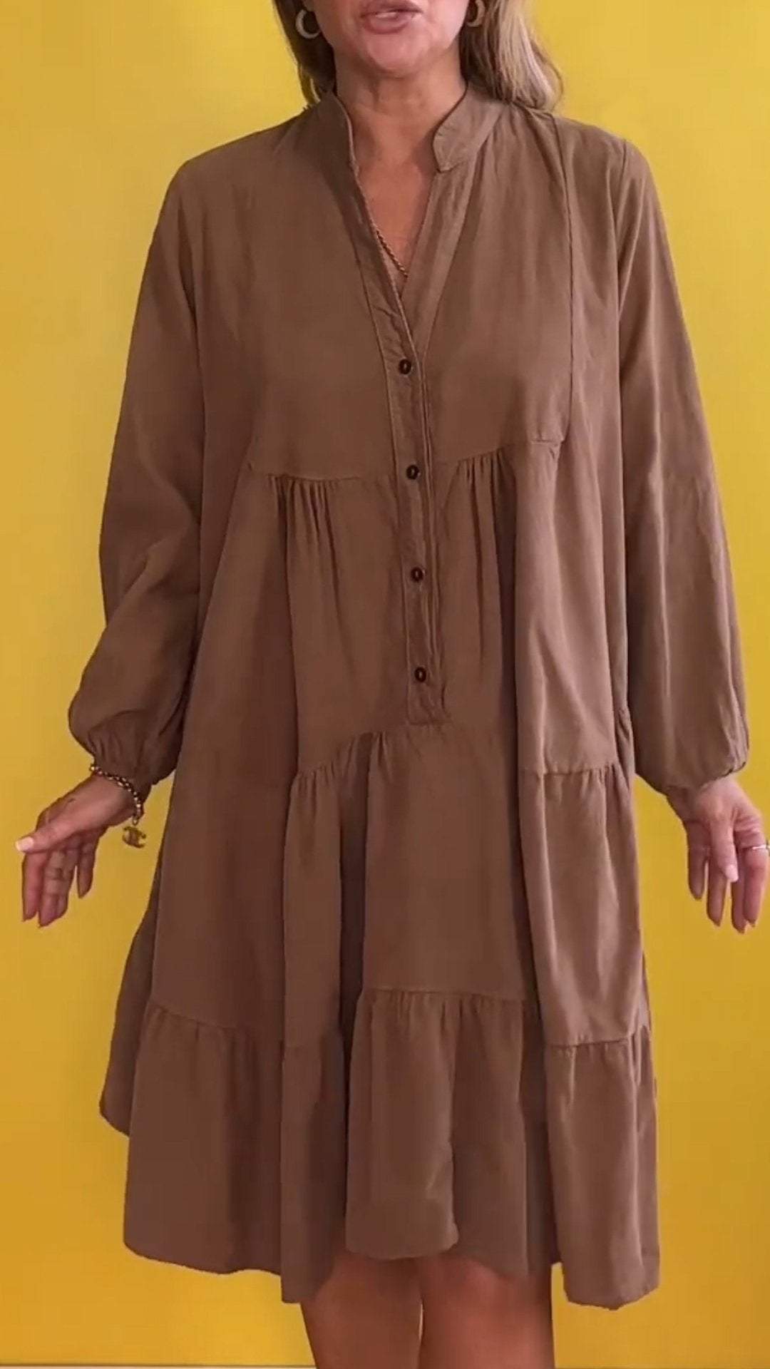 Women Casual V-neck Short Long-sleeved Shirt Dress