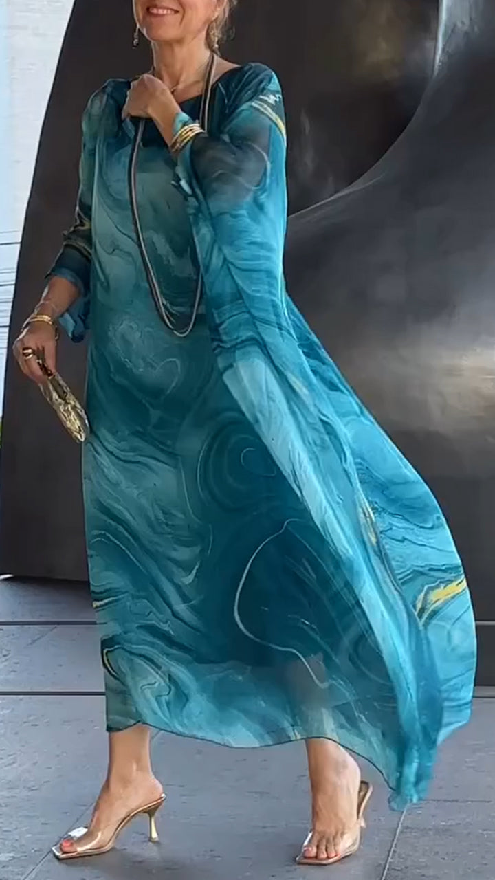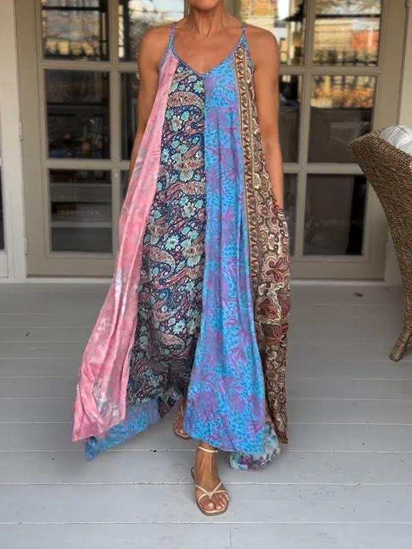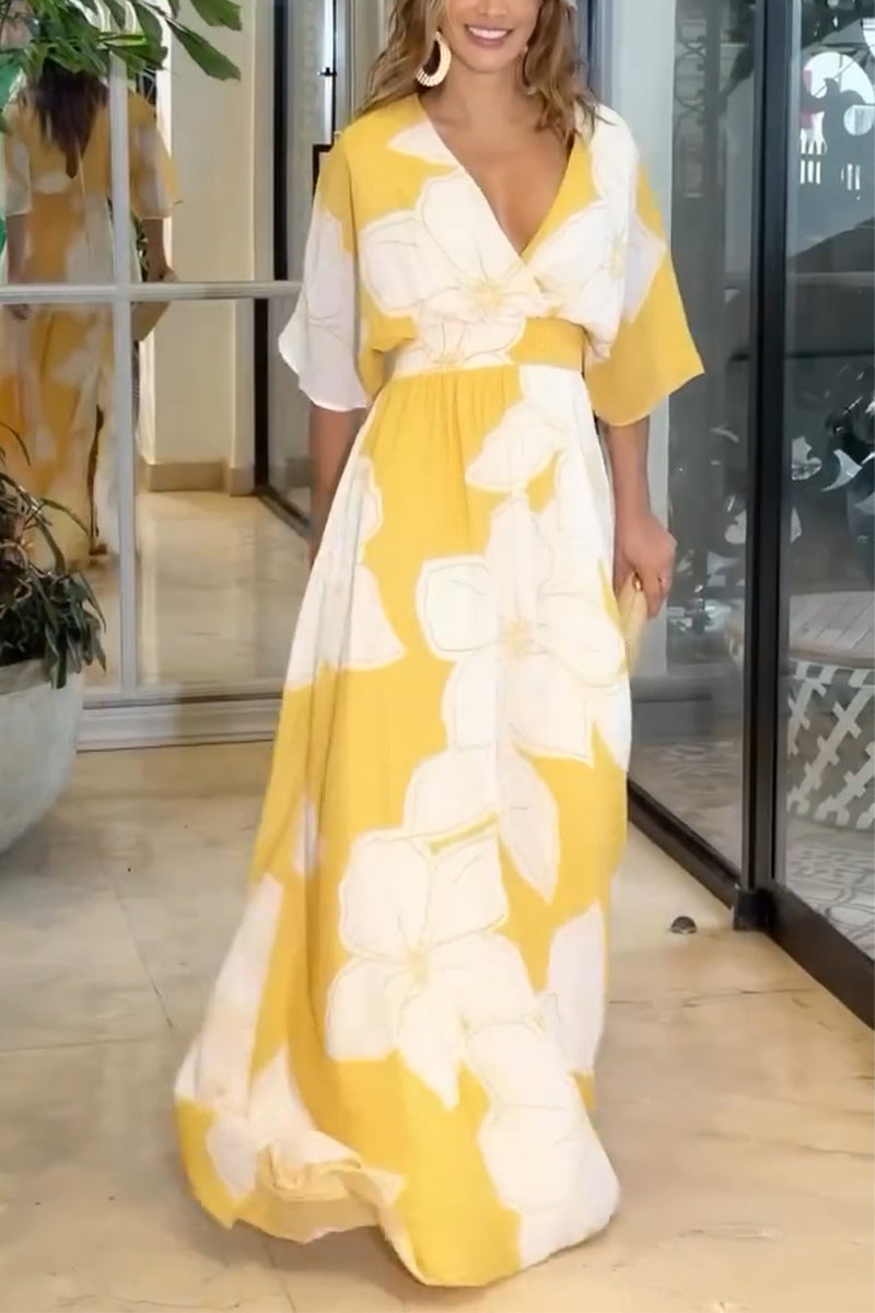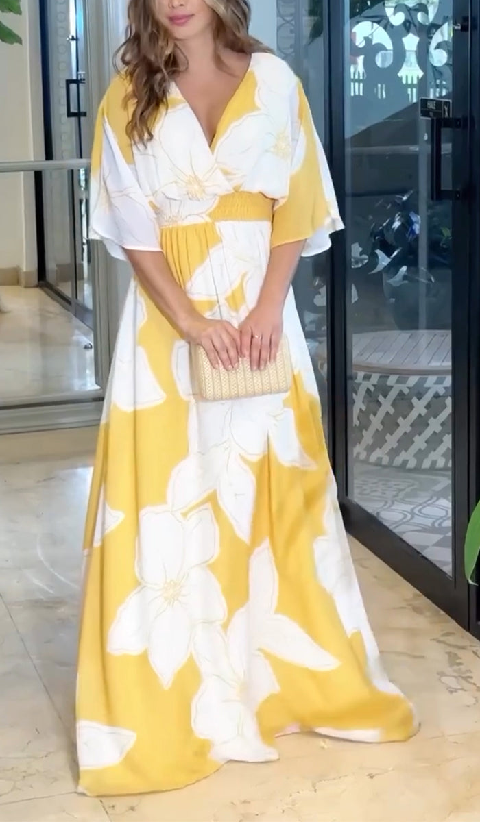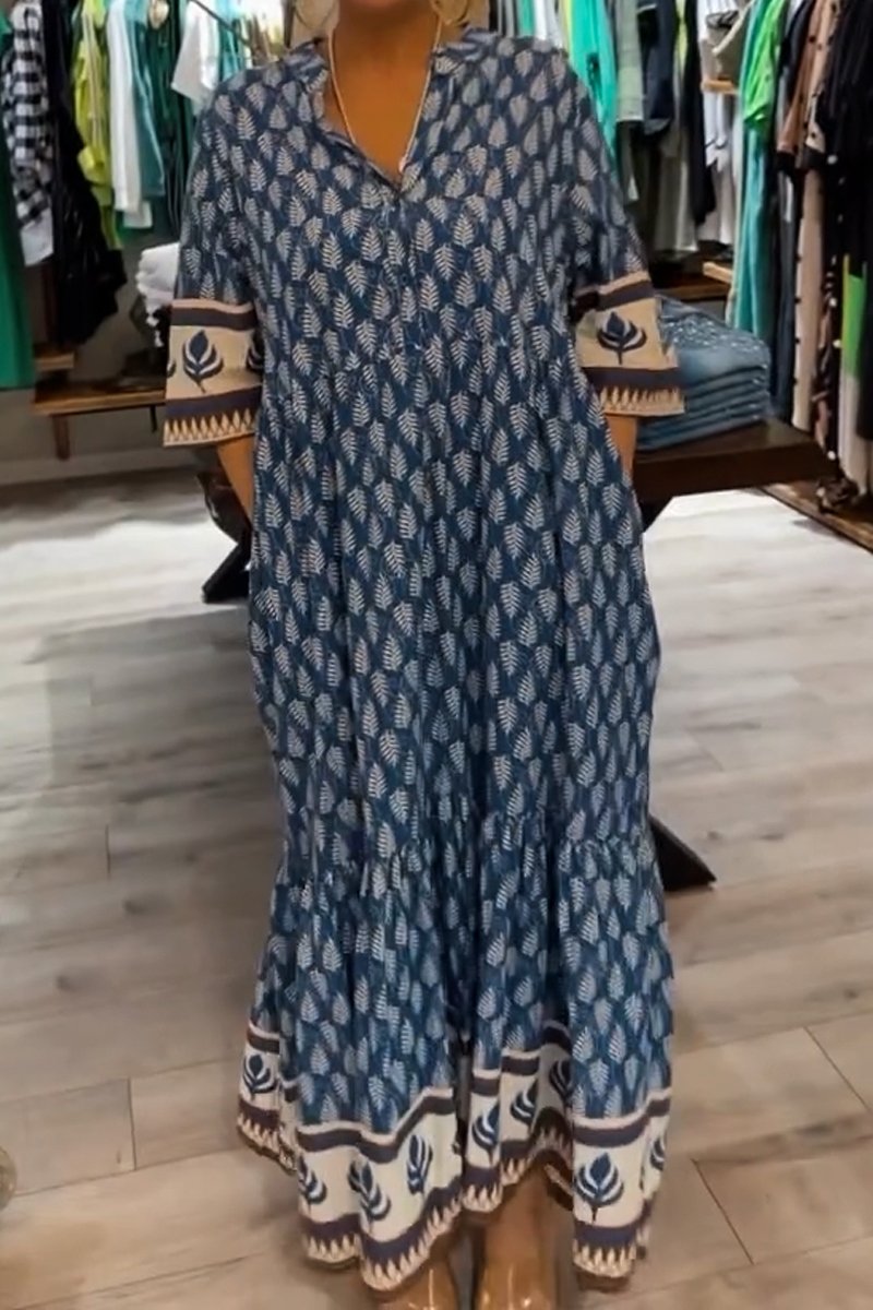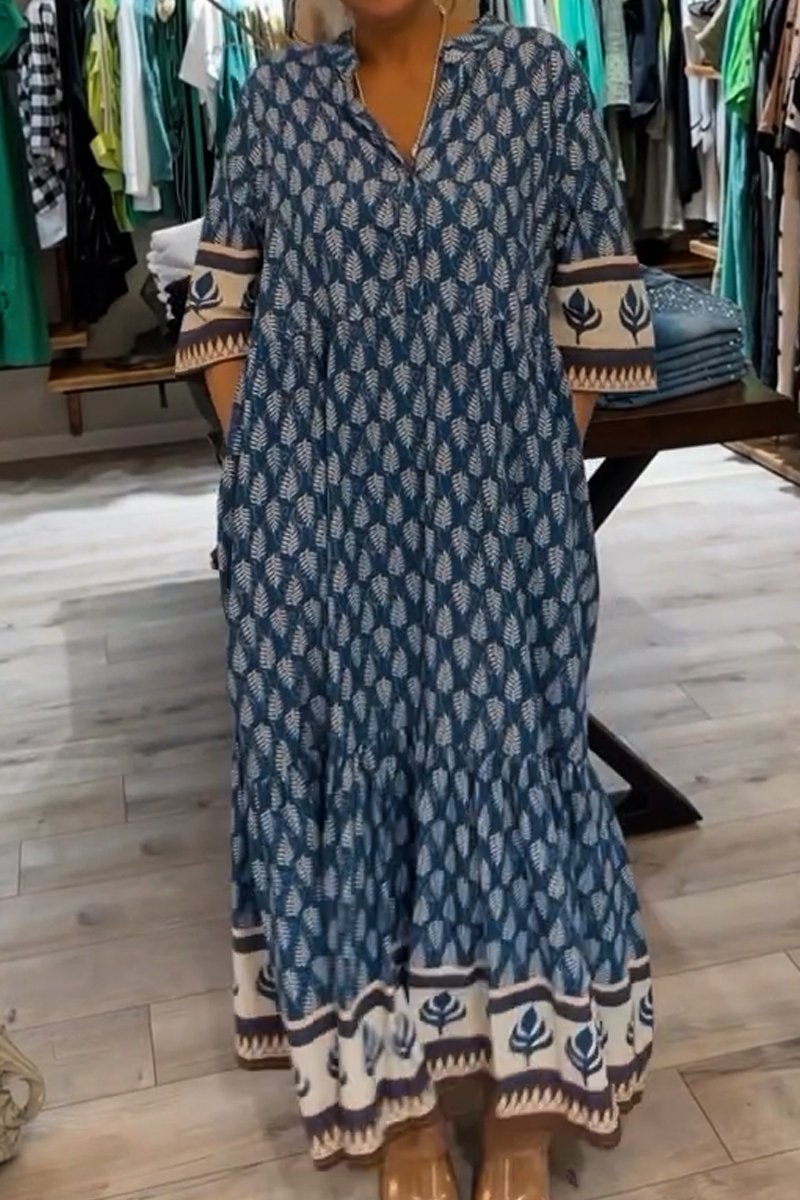 Women's Elegant Maxi Dress Plus Size V-neck Printed Loose Dress