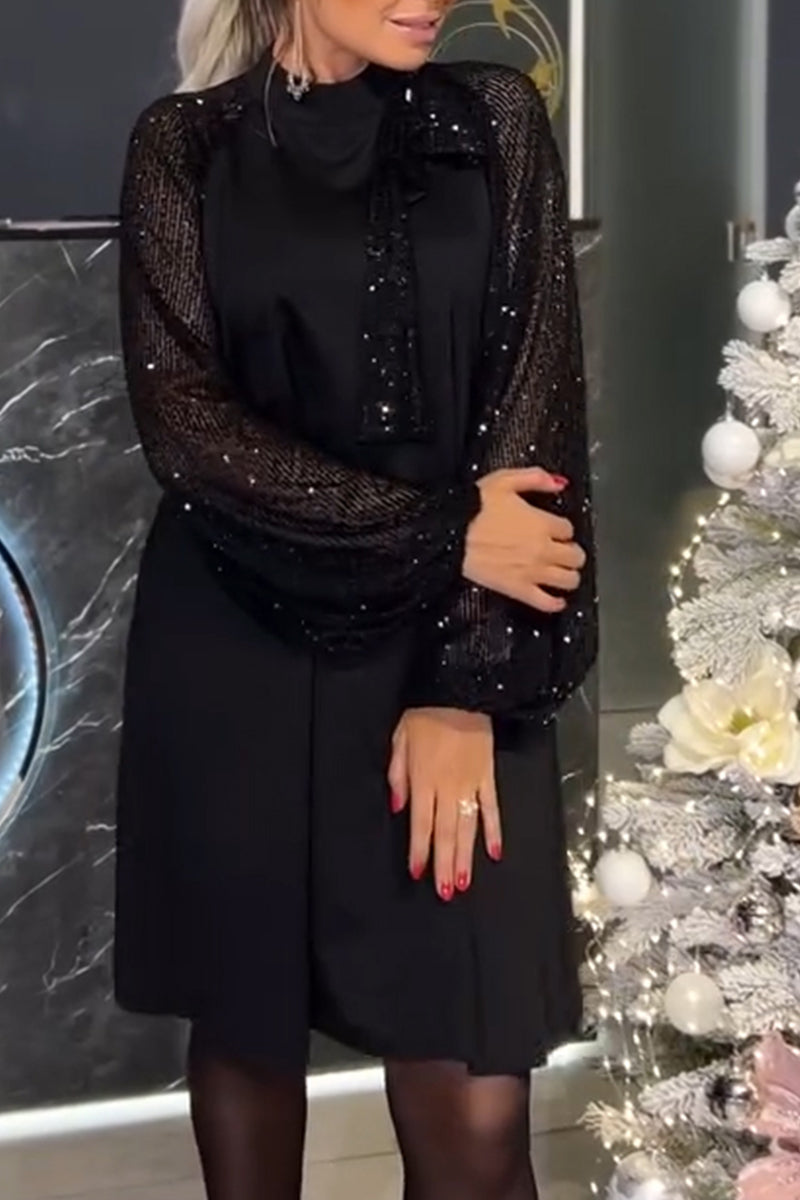 Women's V-neck Sexy Slit Slim Fit Sequined Feather Stitching Maxi Dress