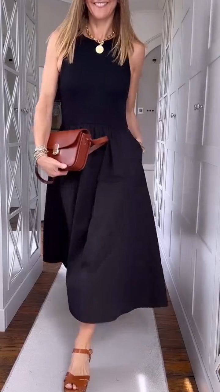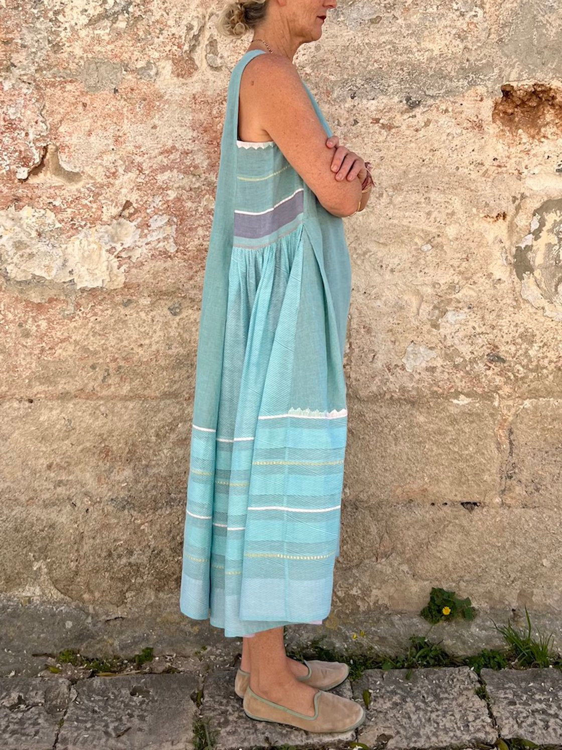 Women's Round Neck Mid-sleeve Cotton and Linen Dress