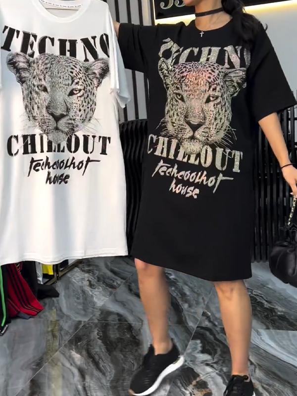 Women's Summer Plus Size Dress Casual Leopard Print Short Sleeve Dress