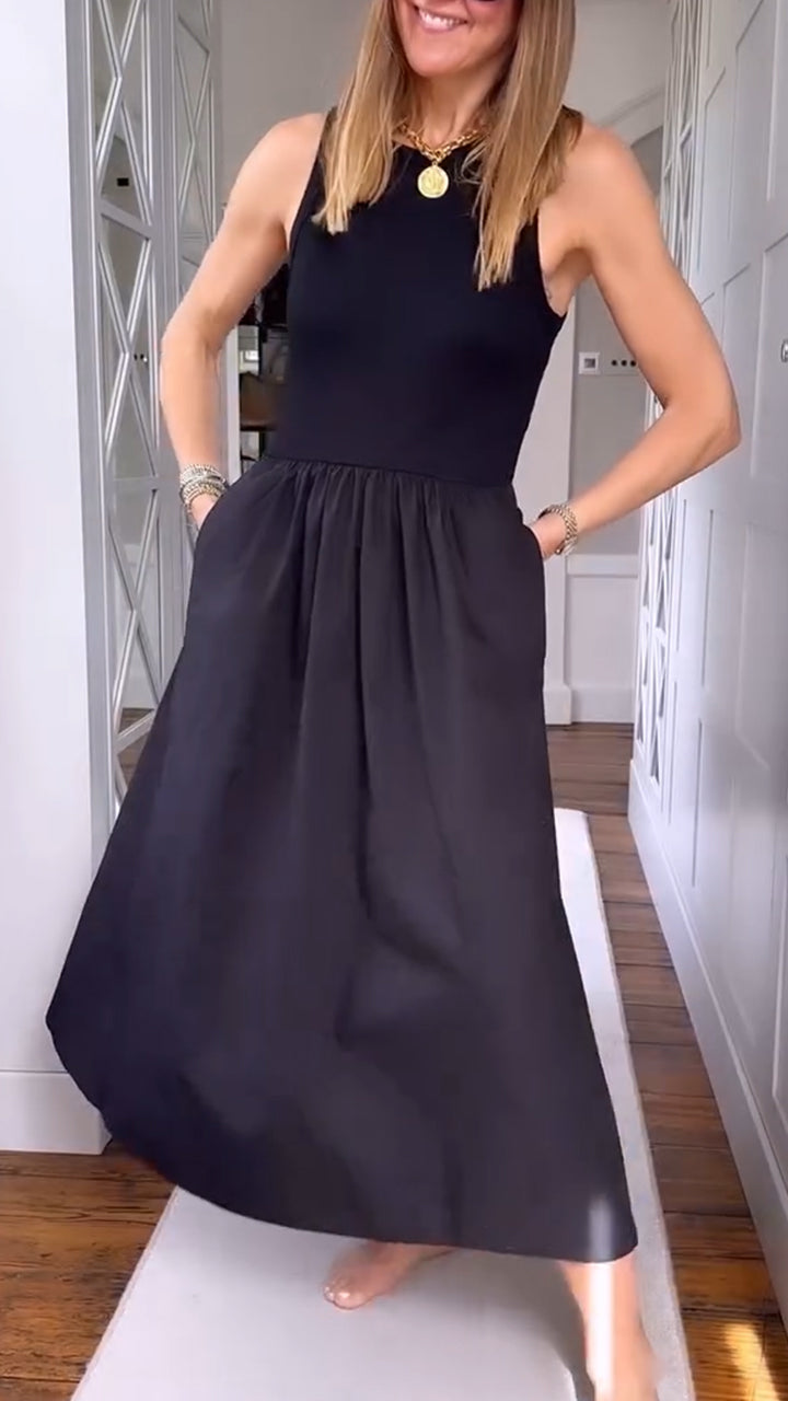Women's casual cotton and linen sleeveless slit gradient tie-dye long dress