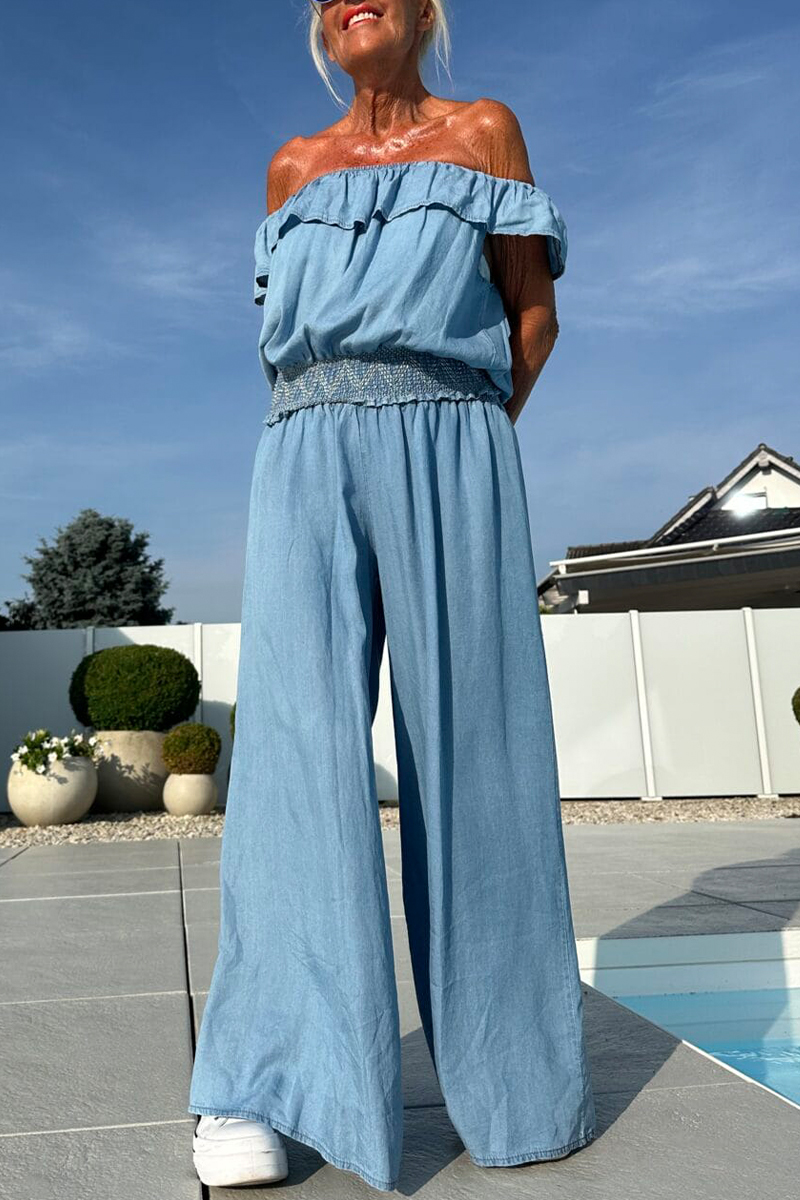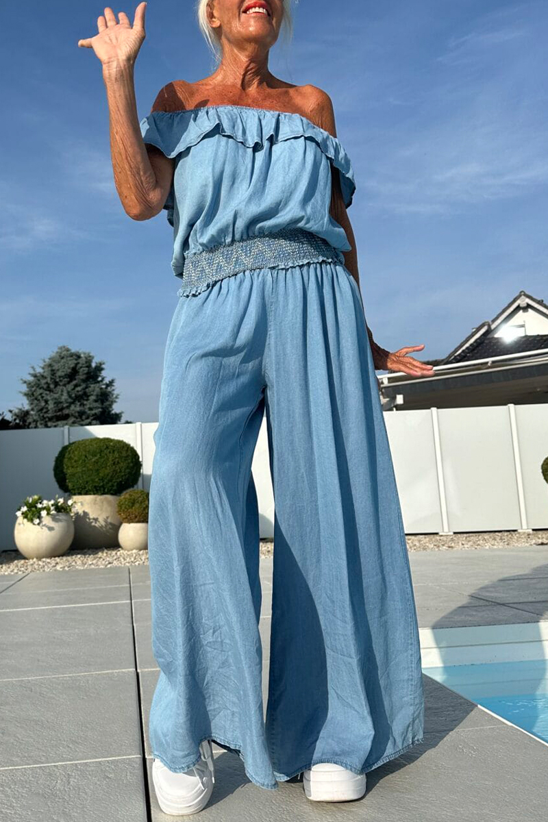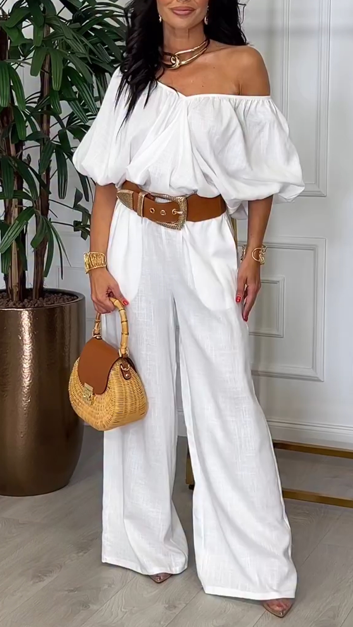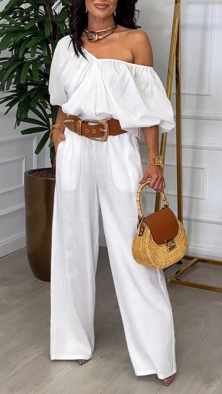 Ladies' Oblique Neck Solid Color Multiple Wearing Styles Top+ Skirt Casual Set