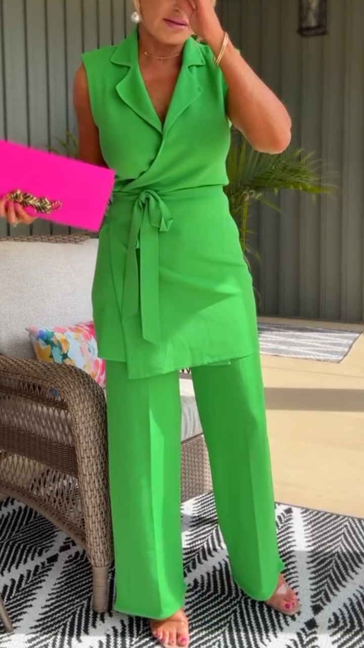 Ladies' Lapel Breasted Top + Pants Casual Suit