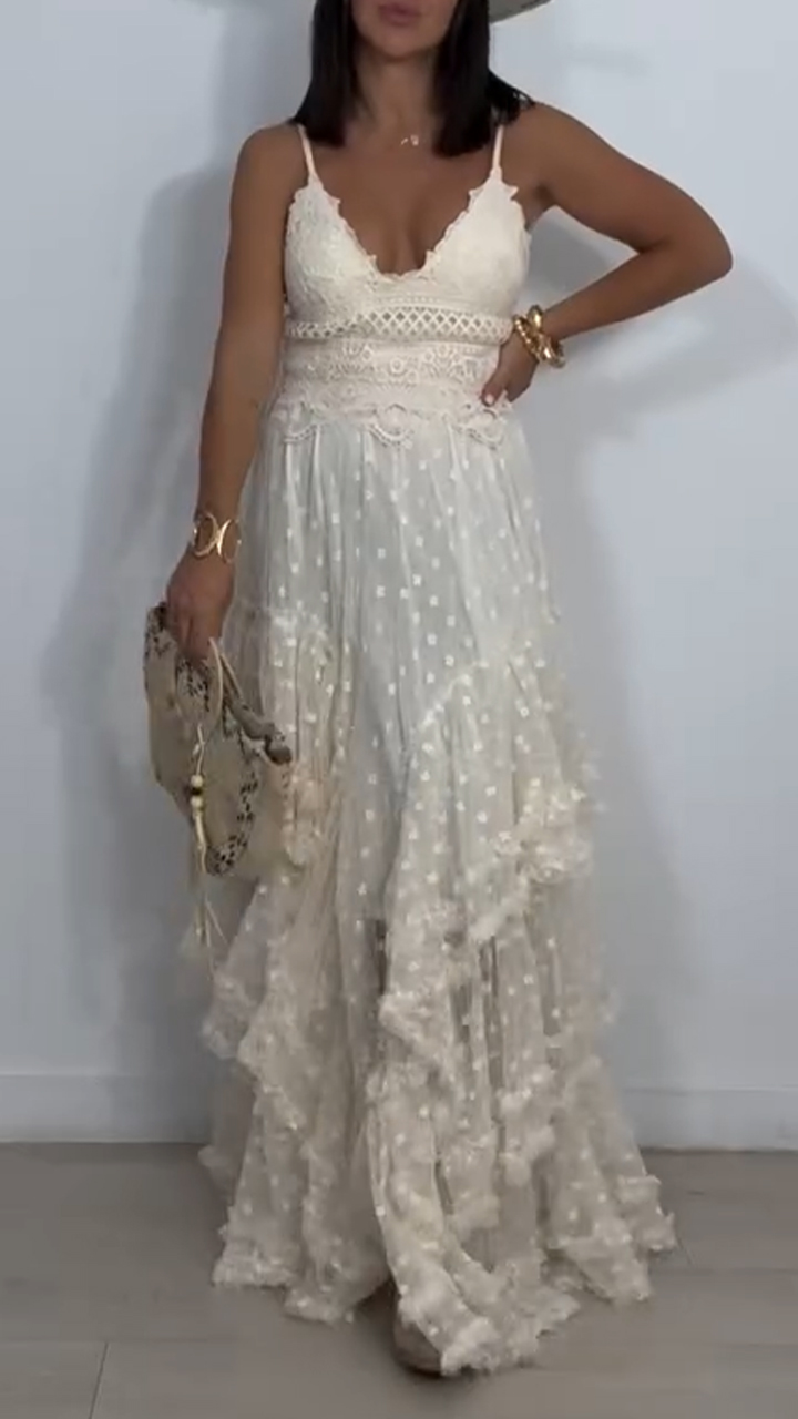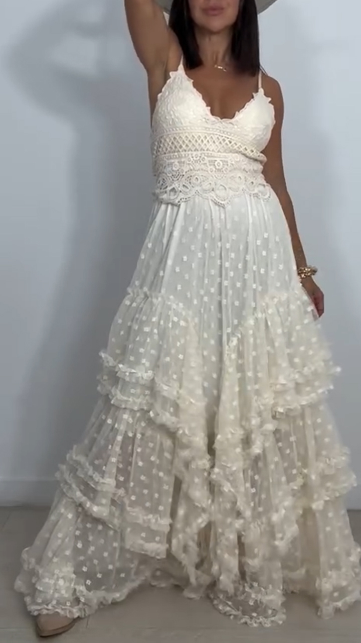 Ladies' Spaghetti Strap Pattern Patchwork Casual Dress