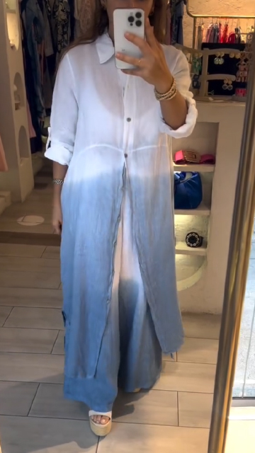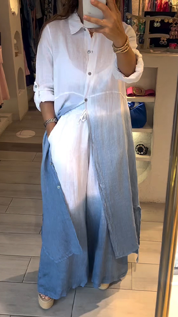 Women's Collar Gradient Long Top+ Pants Loose Casual Suit