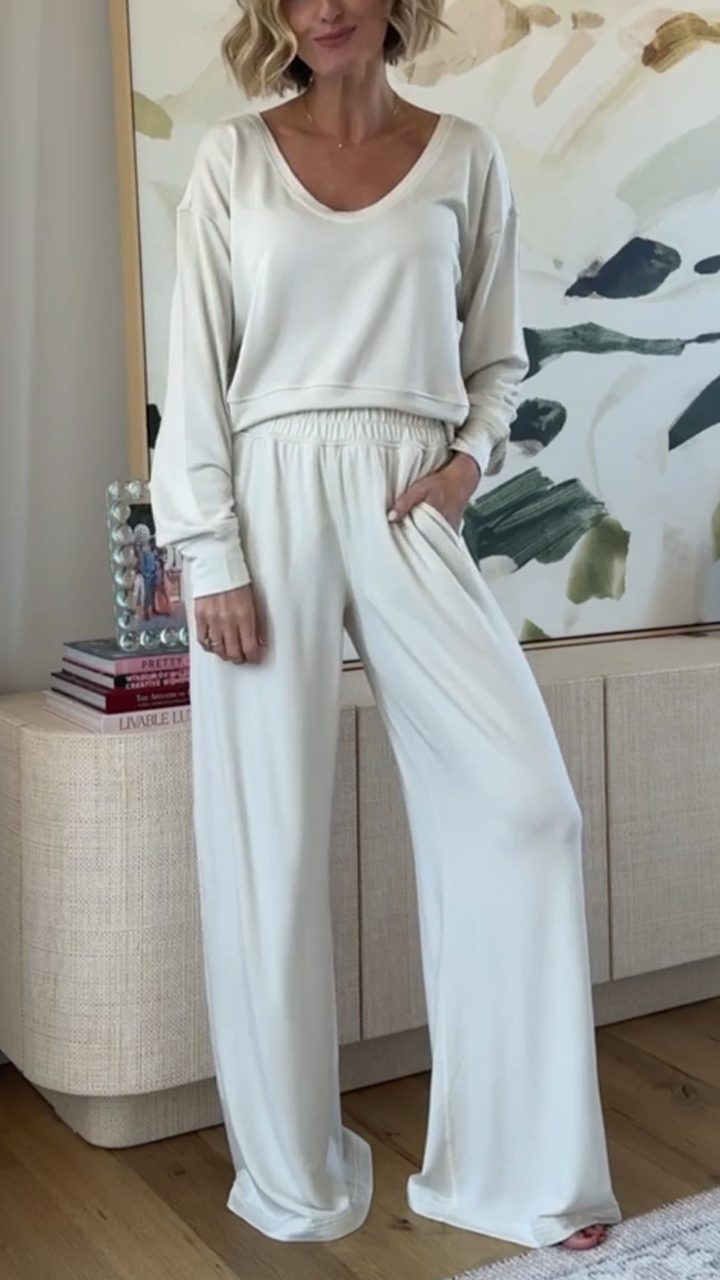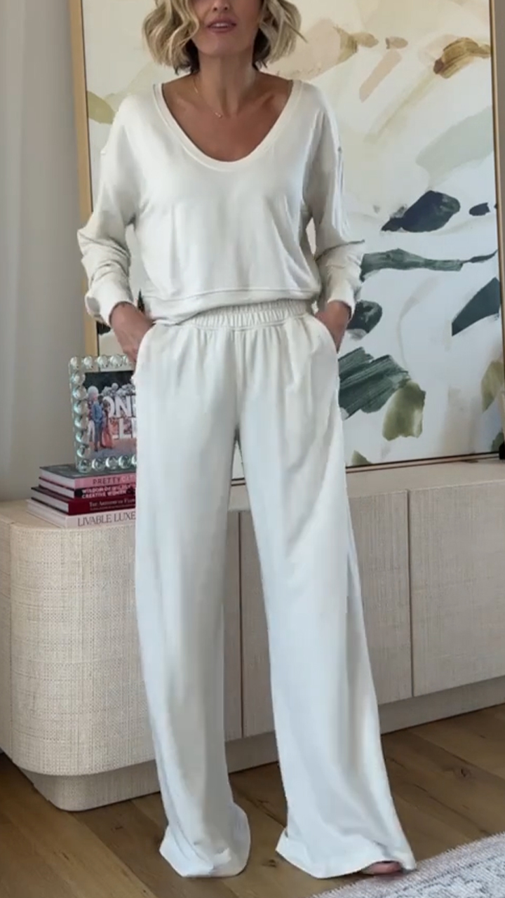 Ladies' Round Neck Solid Color Loose Casual Suit