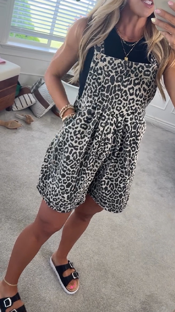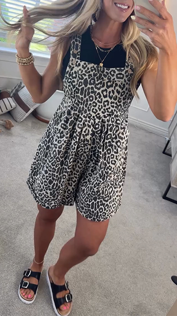Women's Shoulder Strap Leopard Print Jumpsuit