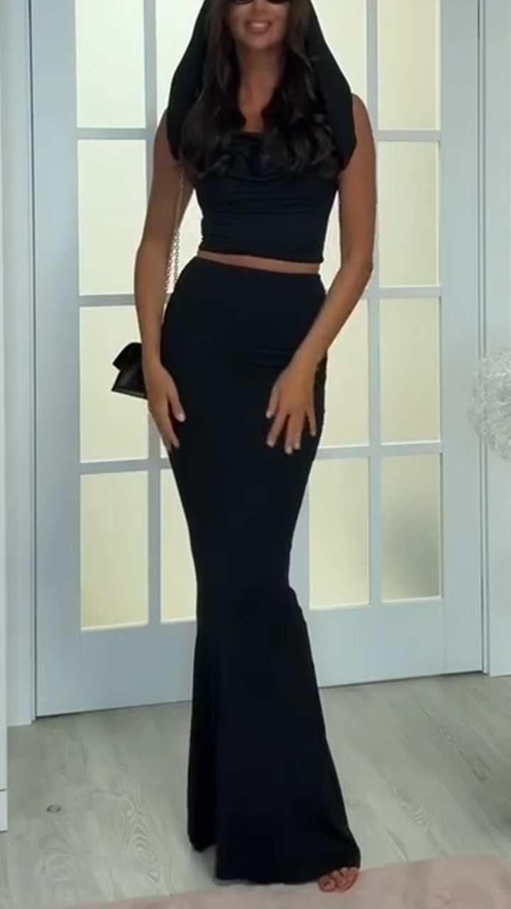 Ladies' Round Neck Solid Color Top+ Skirt with A Casual Temperament Suit