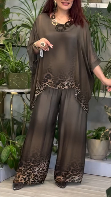 Ladies' Round Neck Leopard Print Loose Casual Suit