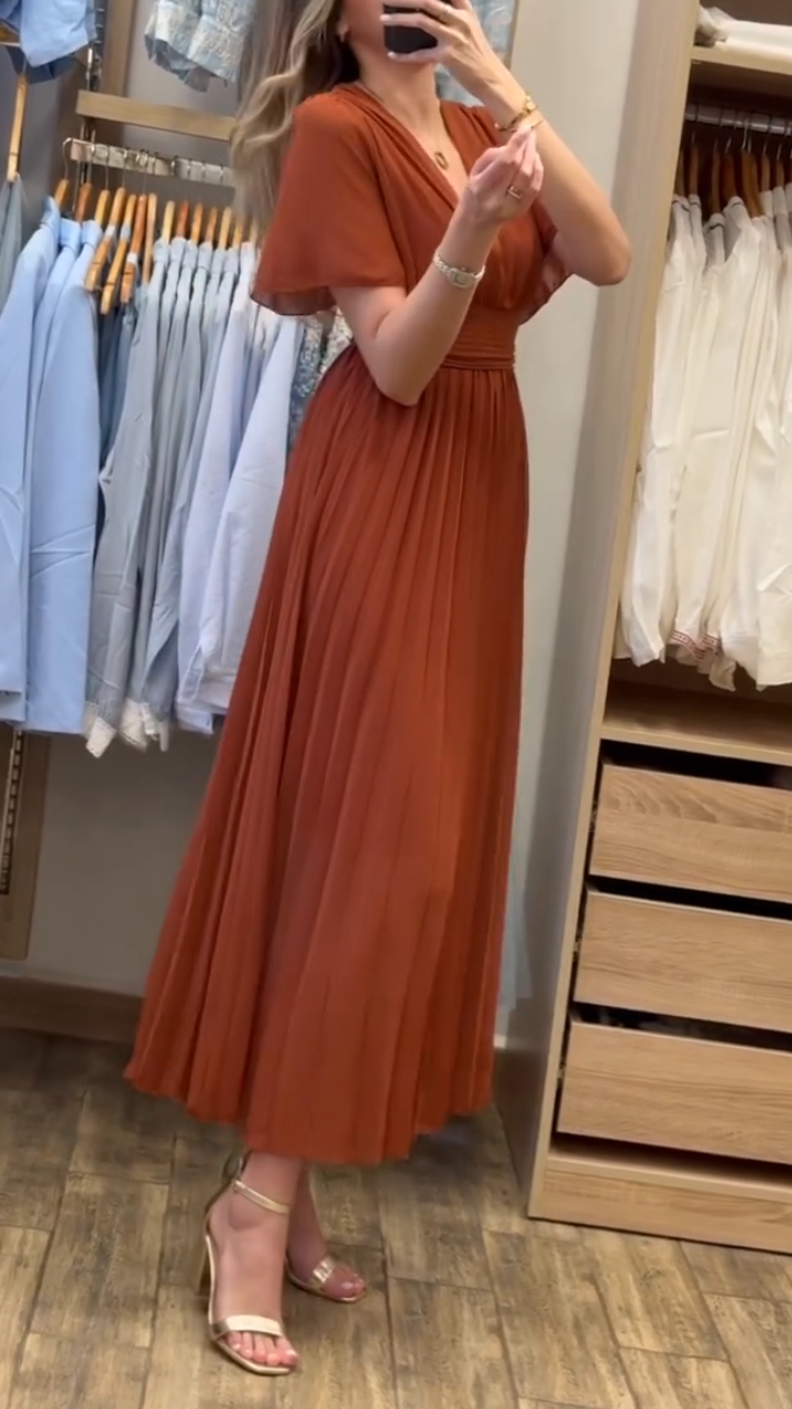 • Women's V-neck Chiffon Pleated Elegant Dress