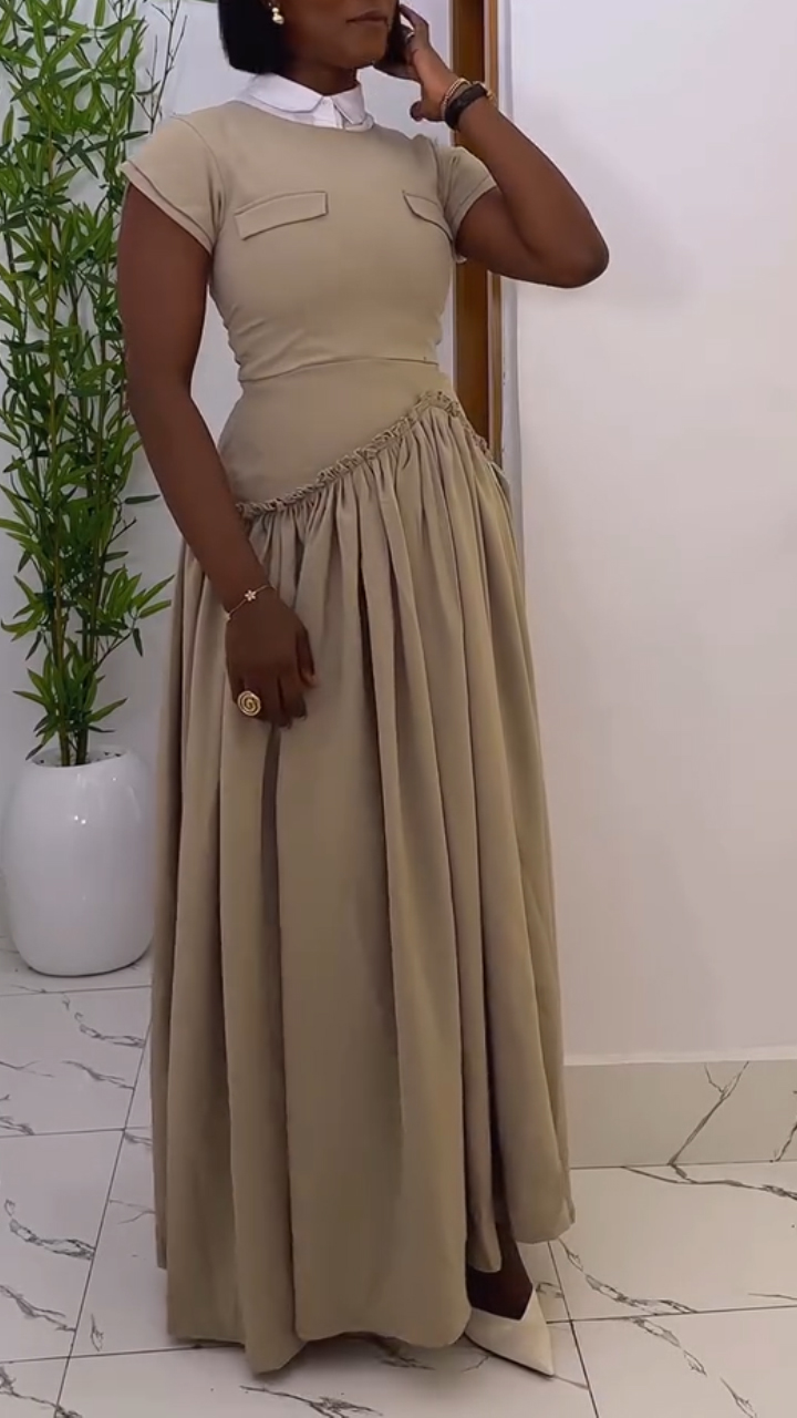 Ladies' Collar Button Slit Temperament Leisure Dress