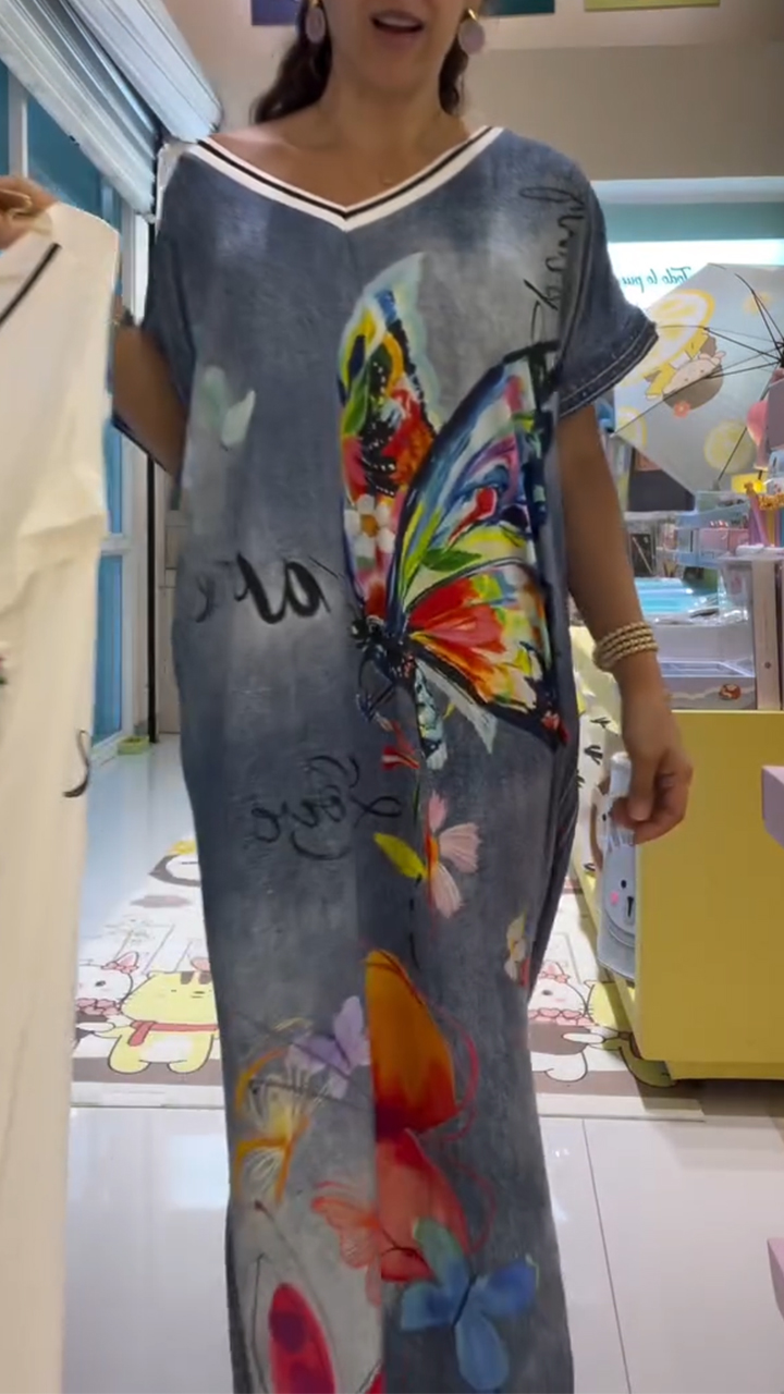 Ladies' V-neck Wash Water Printed Loose Casual Dress