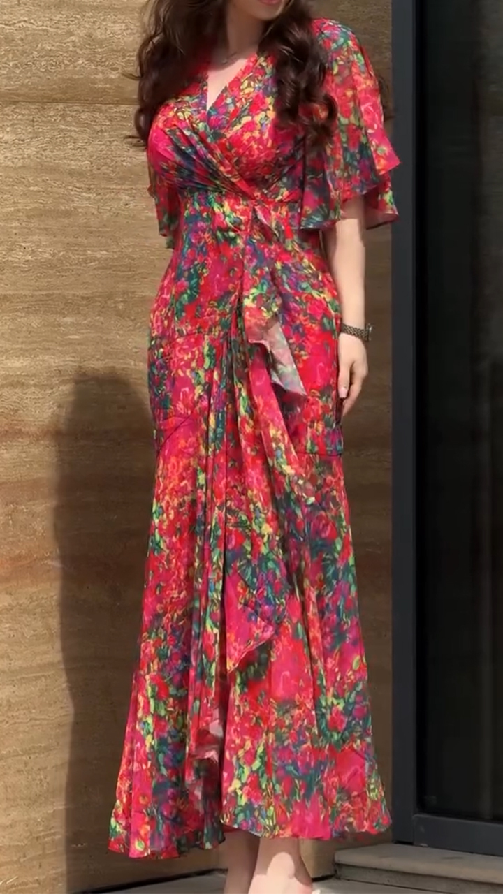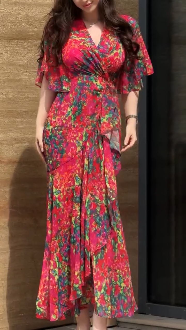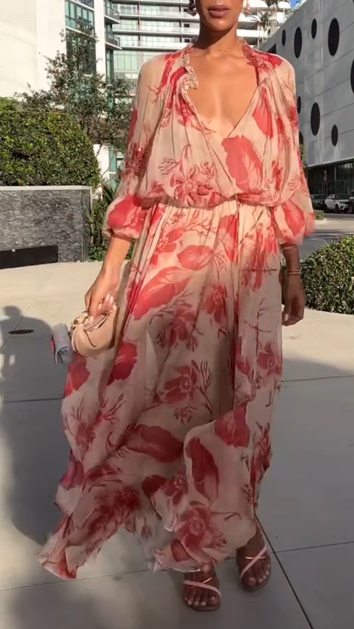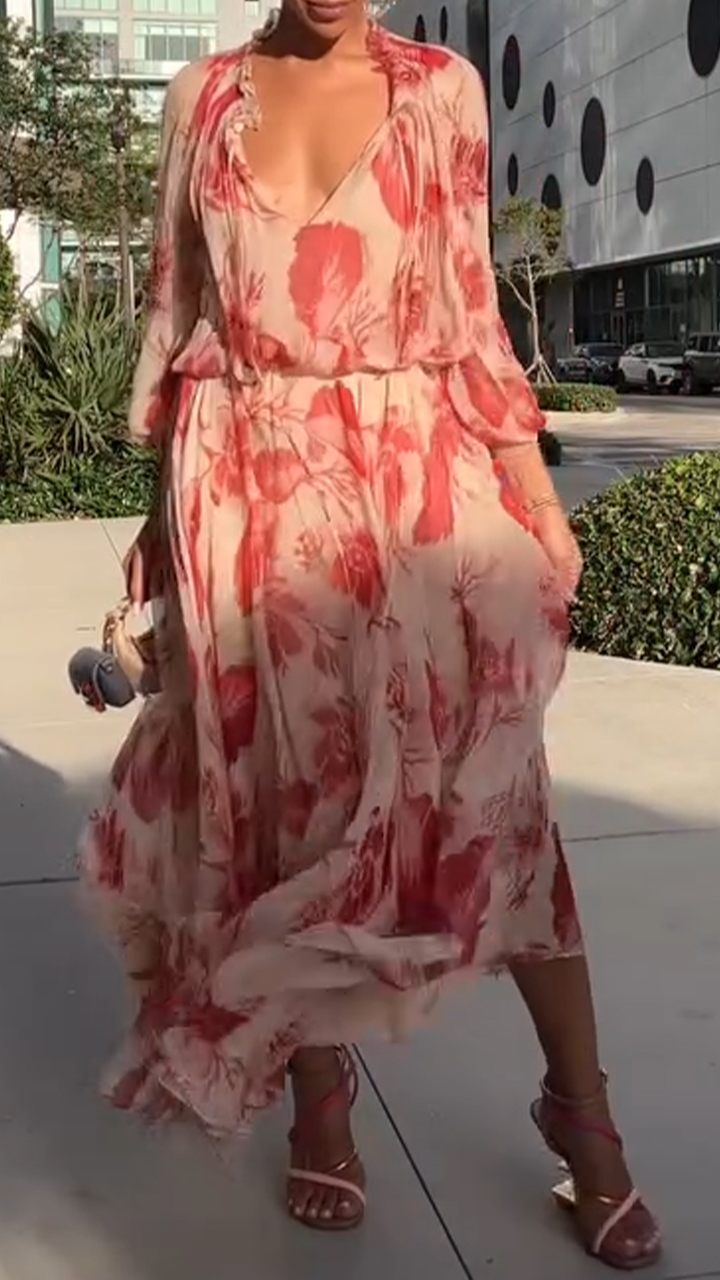 Ladies' V-neck Floral Irregular Casual Temperament Dress