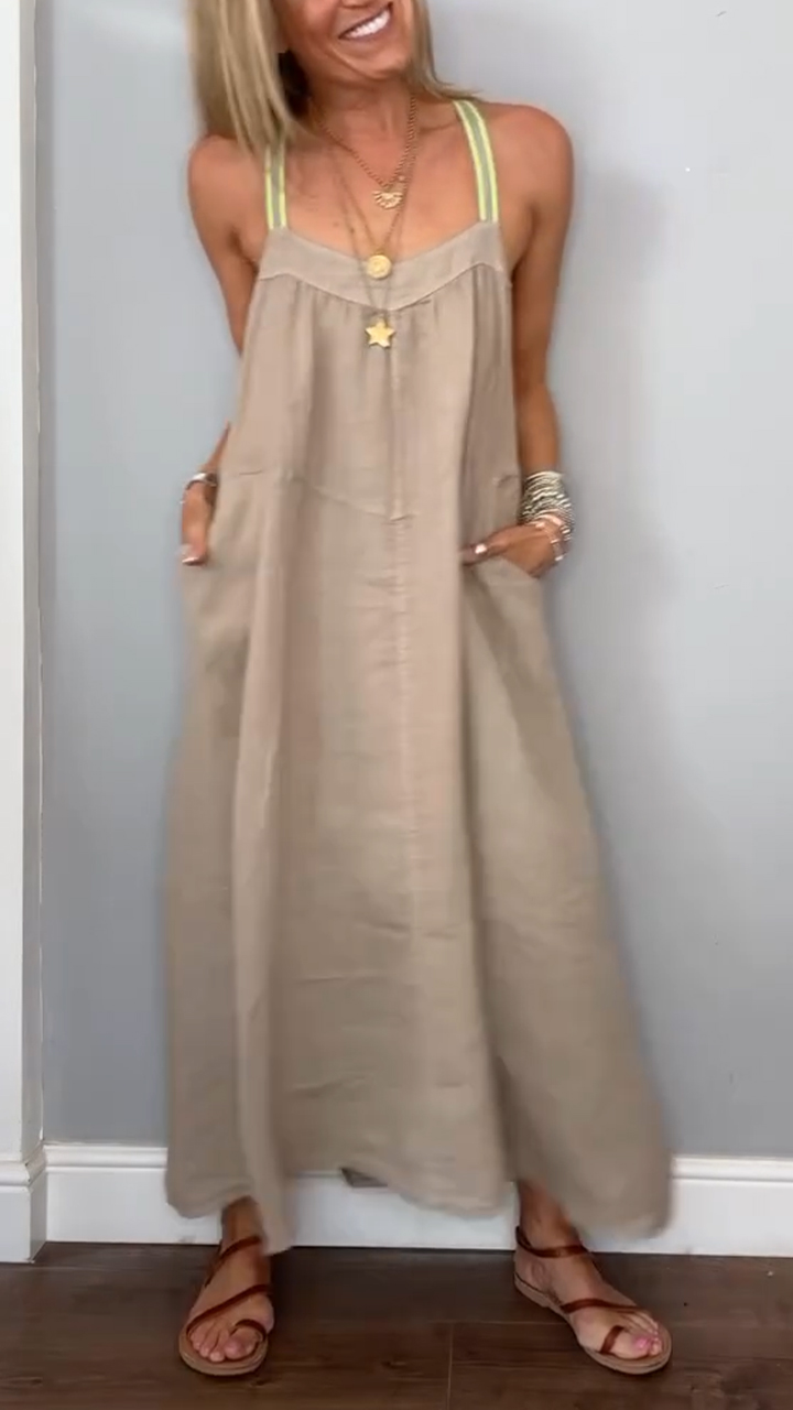 Ladies' Suspender Cotton Linen Loose Casual Dress