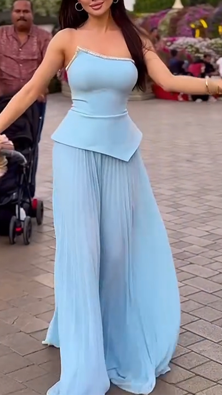 Ladies' Strapless Patchwork Elegant Evening Dress