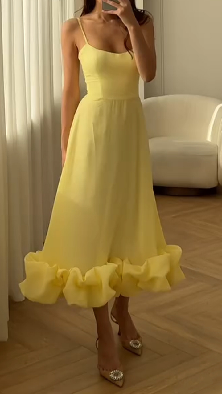 Ladies' Spaghetti Strap Slim Fit Dress+printed Translucent Cover Up Skirt Temperament Casual Set
