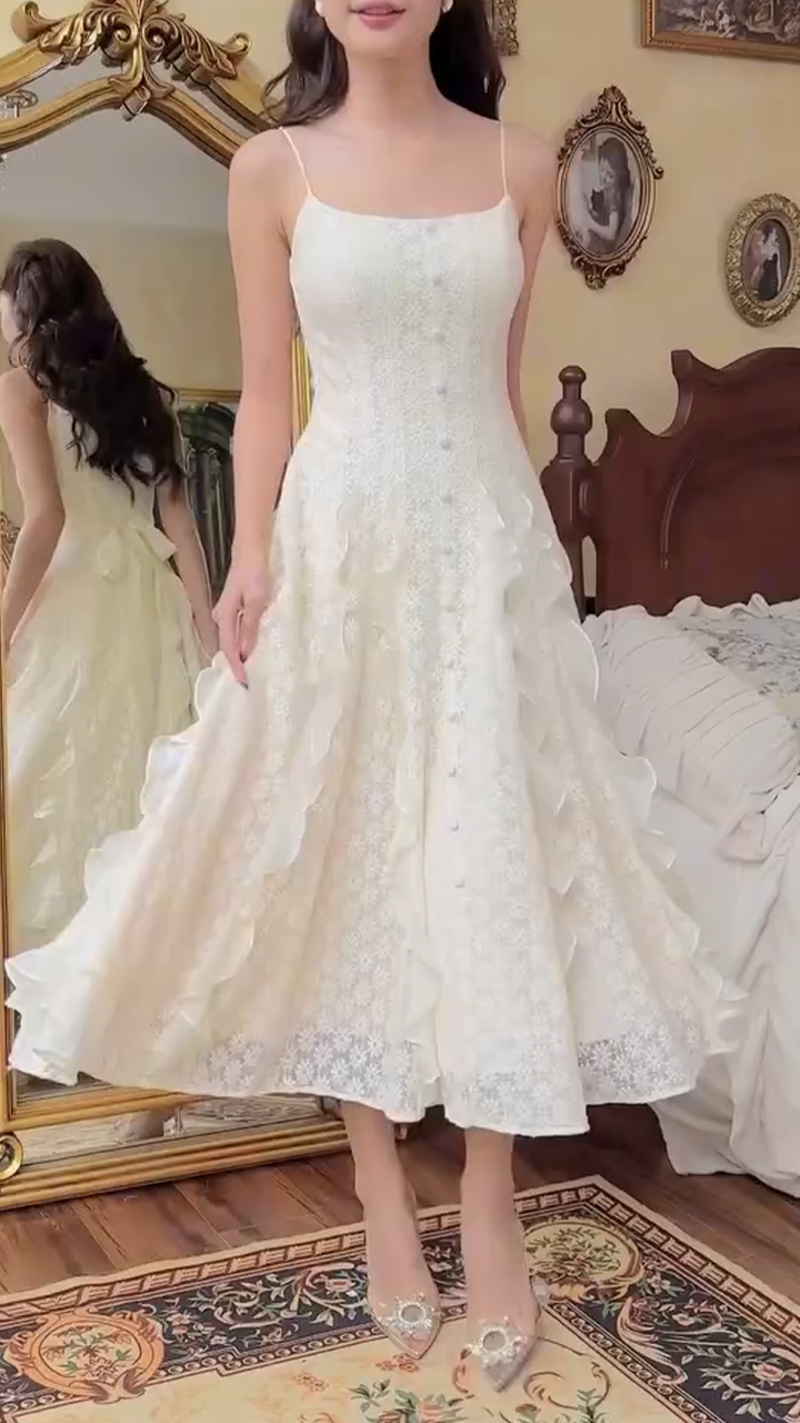 Ladies' Suspender Hollow Print Elegant Temperament Dress