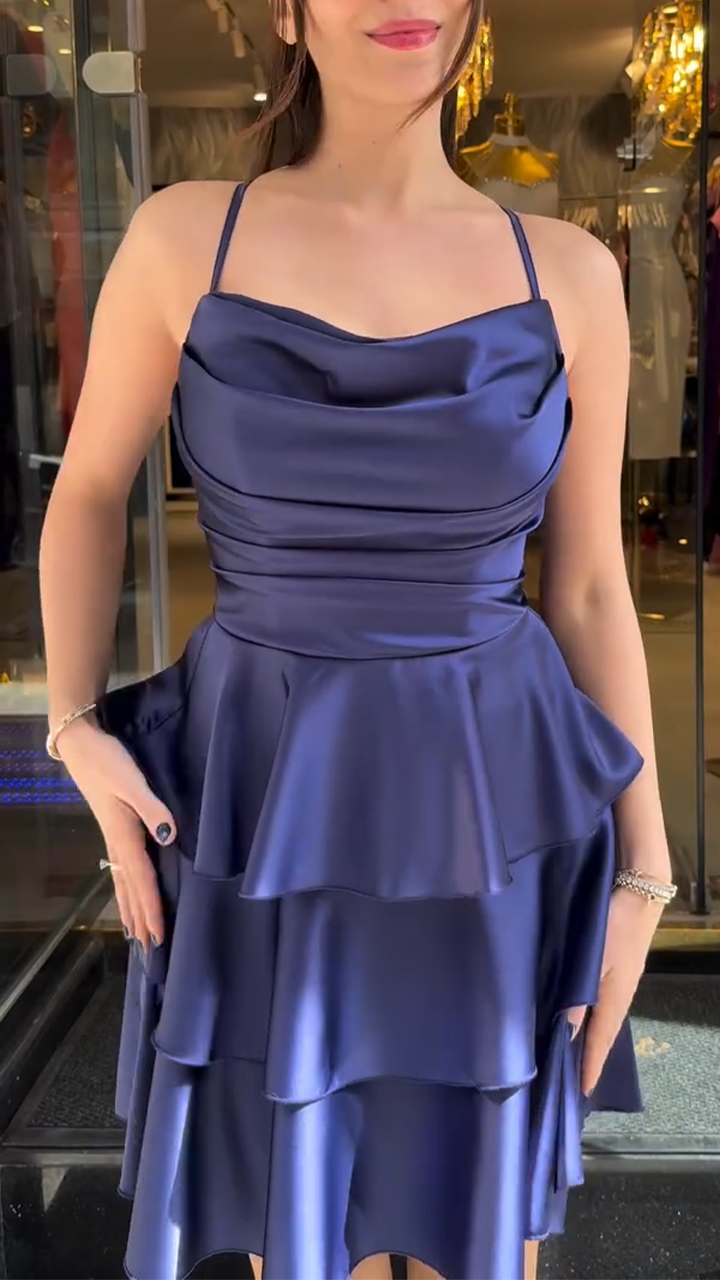Ladies' Slanted Collar, Pleated and Slim Fit Temperament Dress