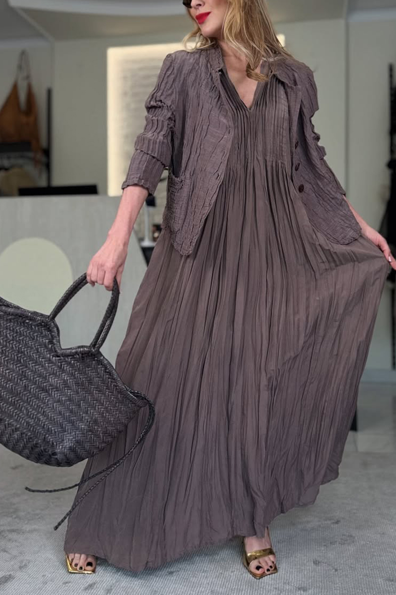 Women's V-neck Pleated Patchwork Loose Casual Dress