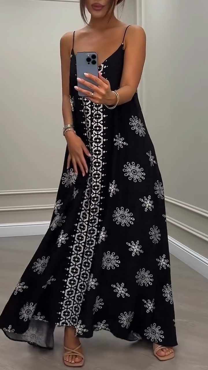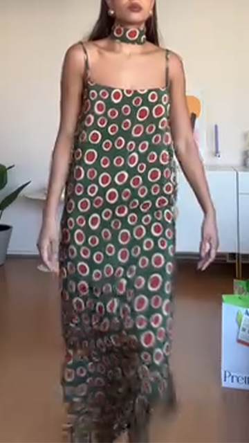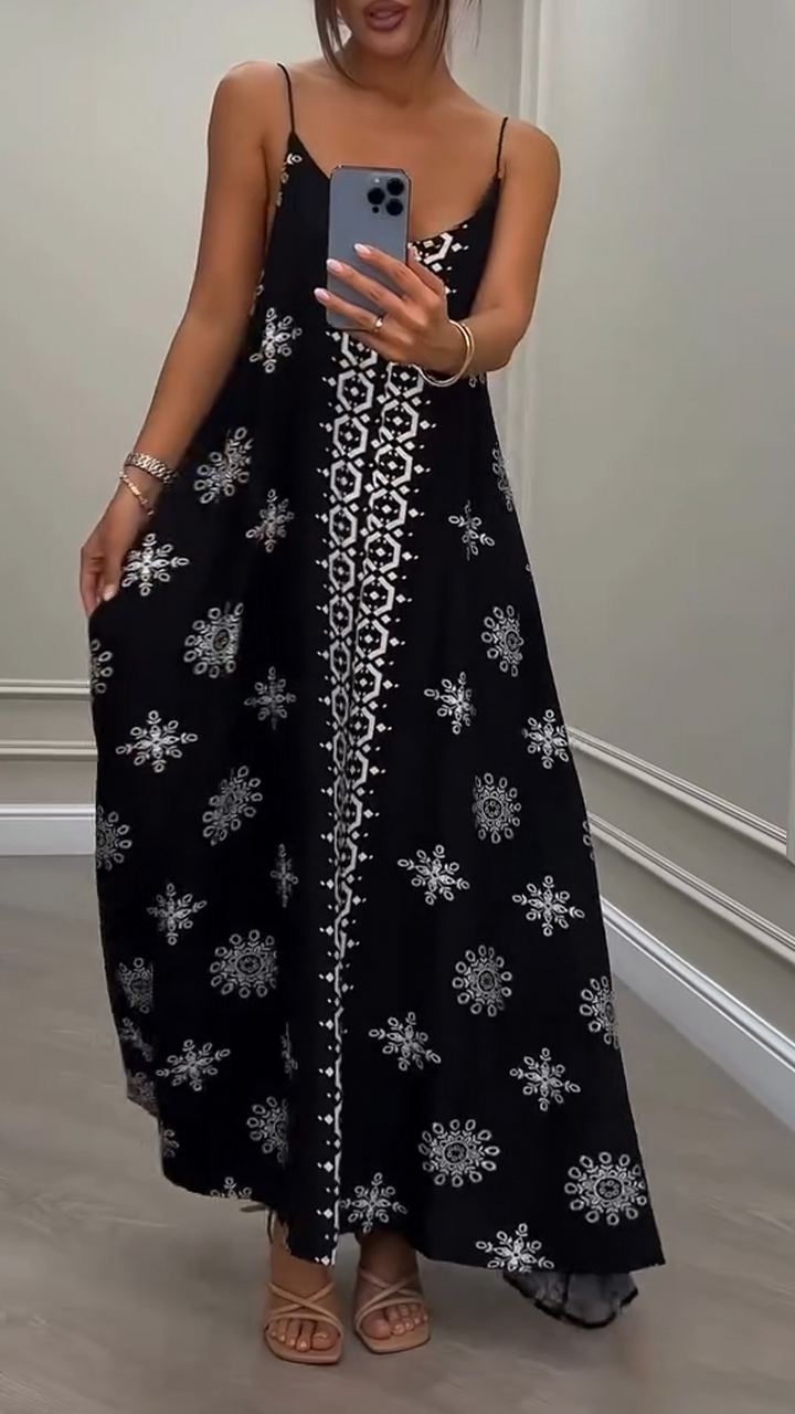 Ladies' Spaghetti Strap Pattern Patchwork Casual Dress