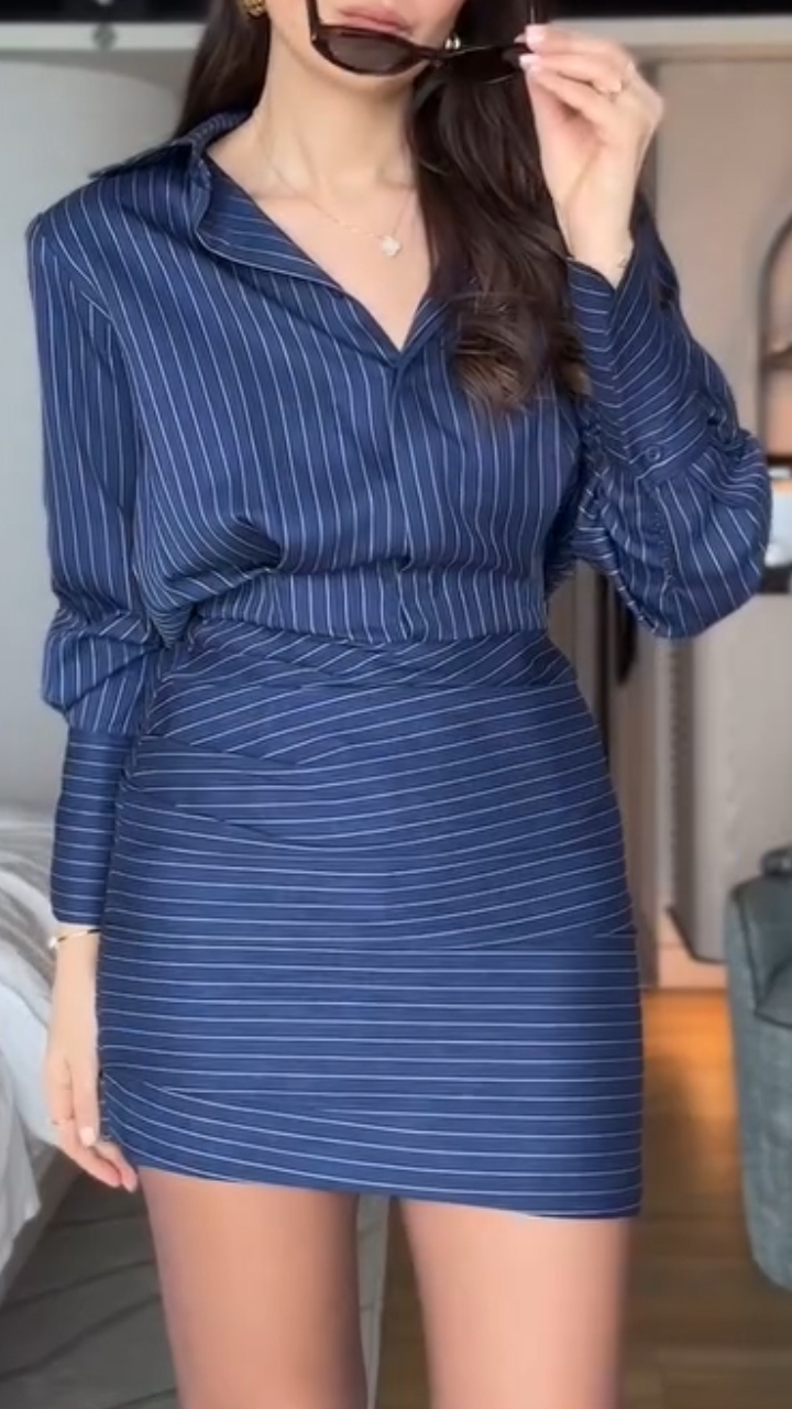 Women's Lapel Striped Hip-wrapped Commuting Casual Dress