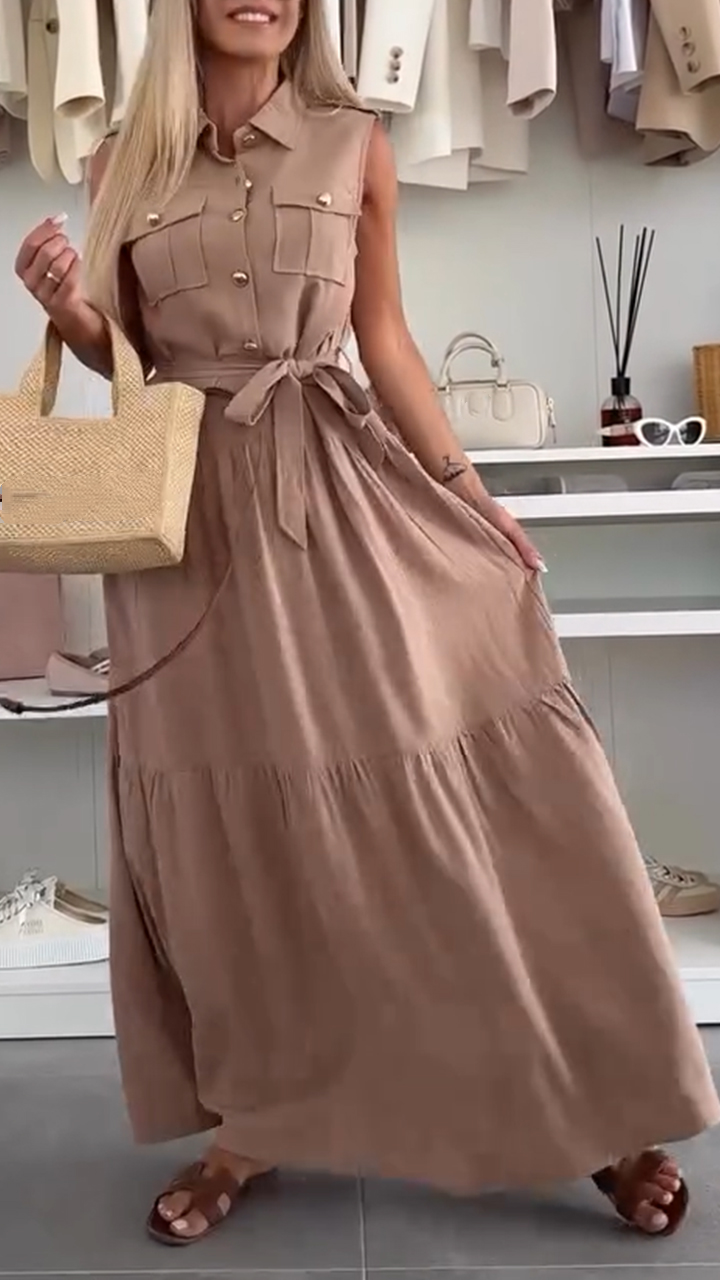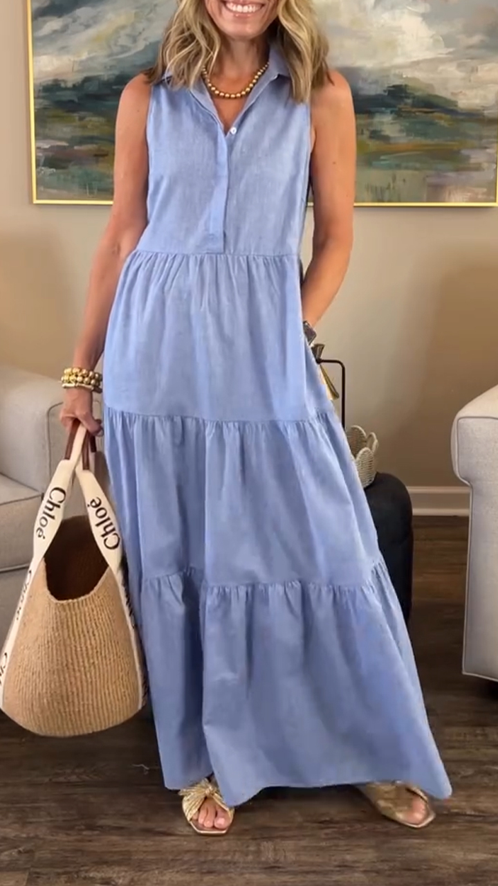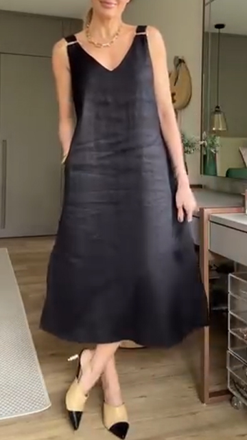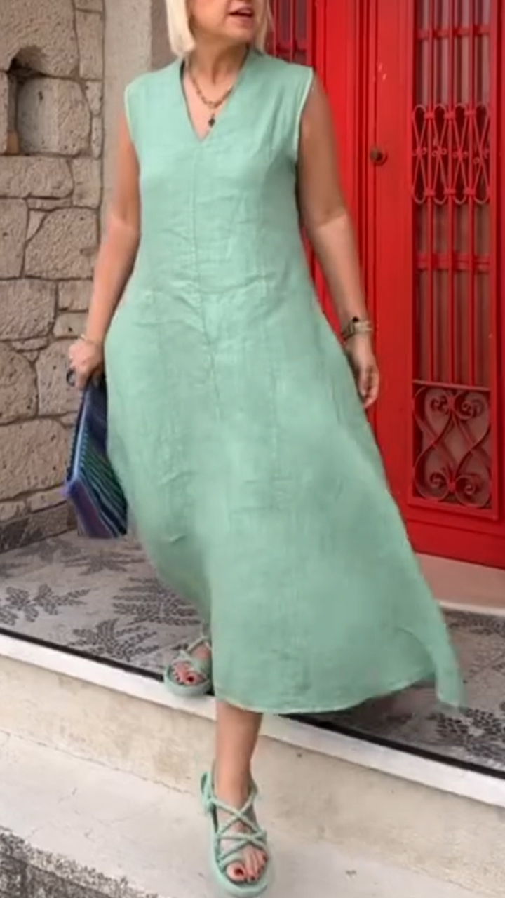 Women's V-neck Sleeveless Cotton and Linen Casual Dress