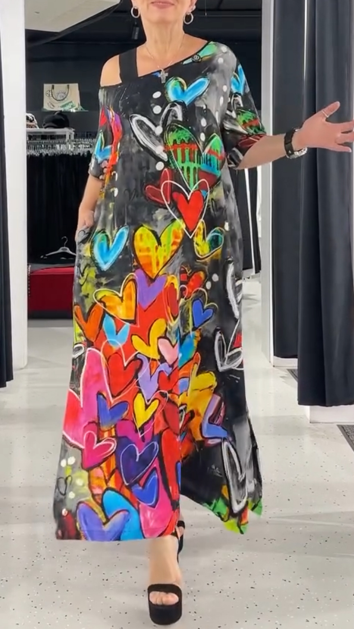 Ladies' Suspender Splicing 3D Printed Temperament Party Dress