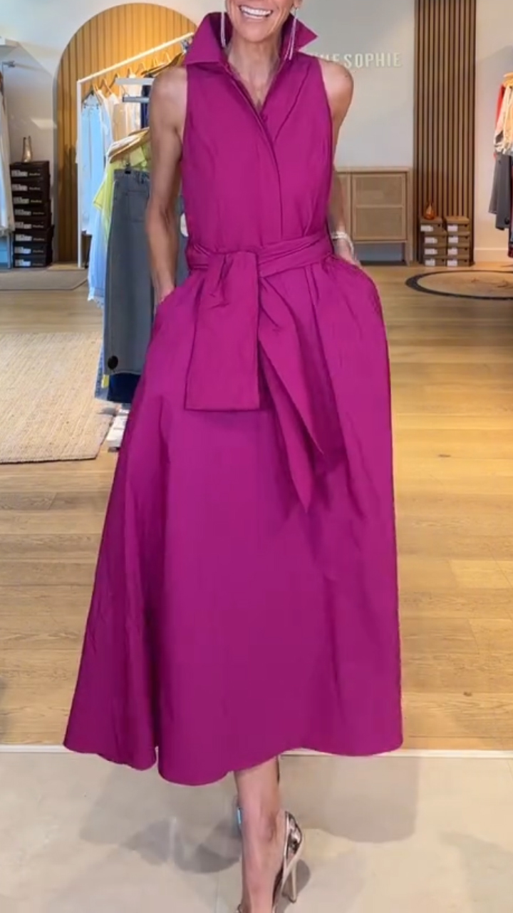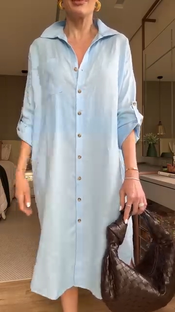Ladies' Collar Patchwork Solid Color Casual Dress