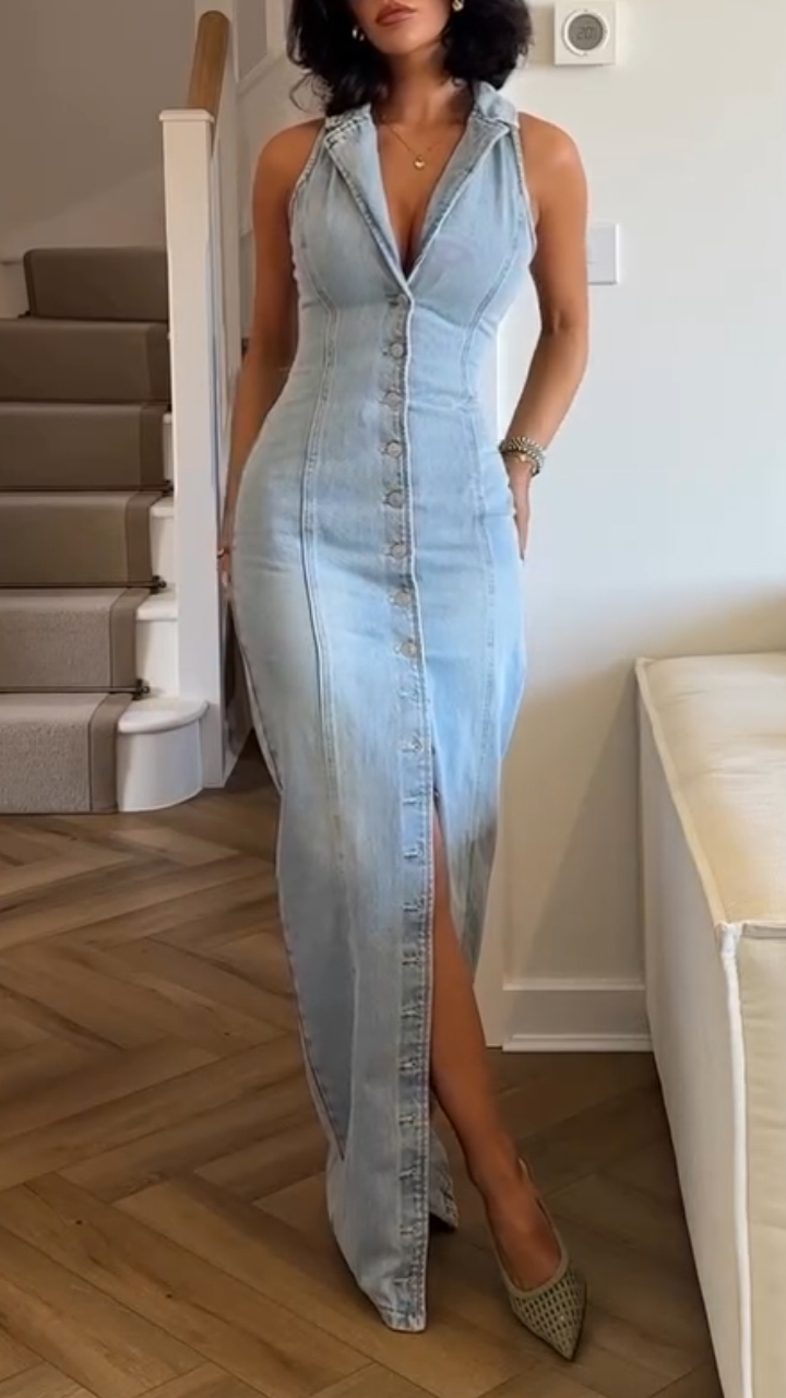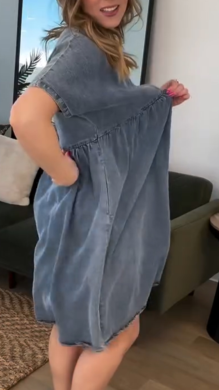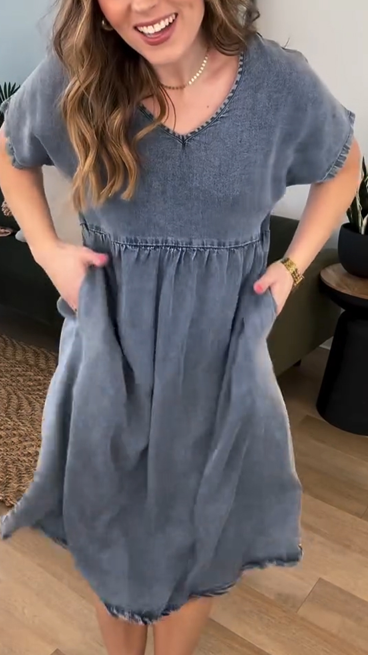Women's V-neck Elegant Tencel Denim Casual Dress