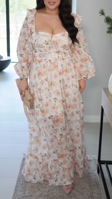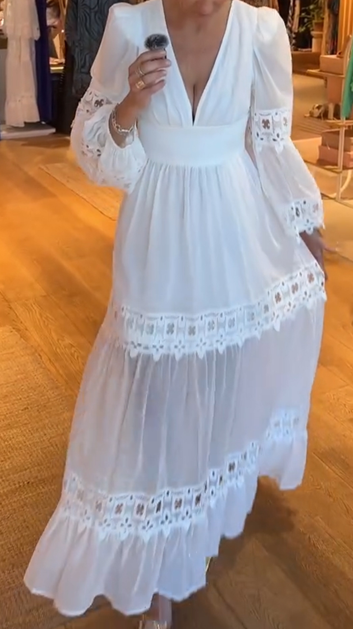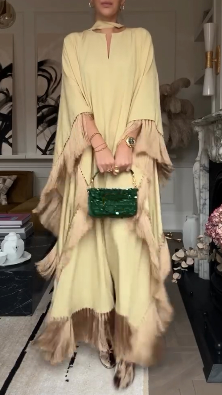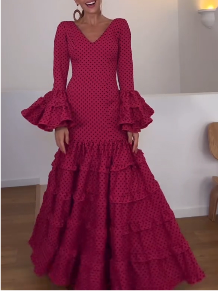 Women's V-neck Trumpet Sleeve Multi-layer Fishtail Temperament Dress