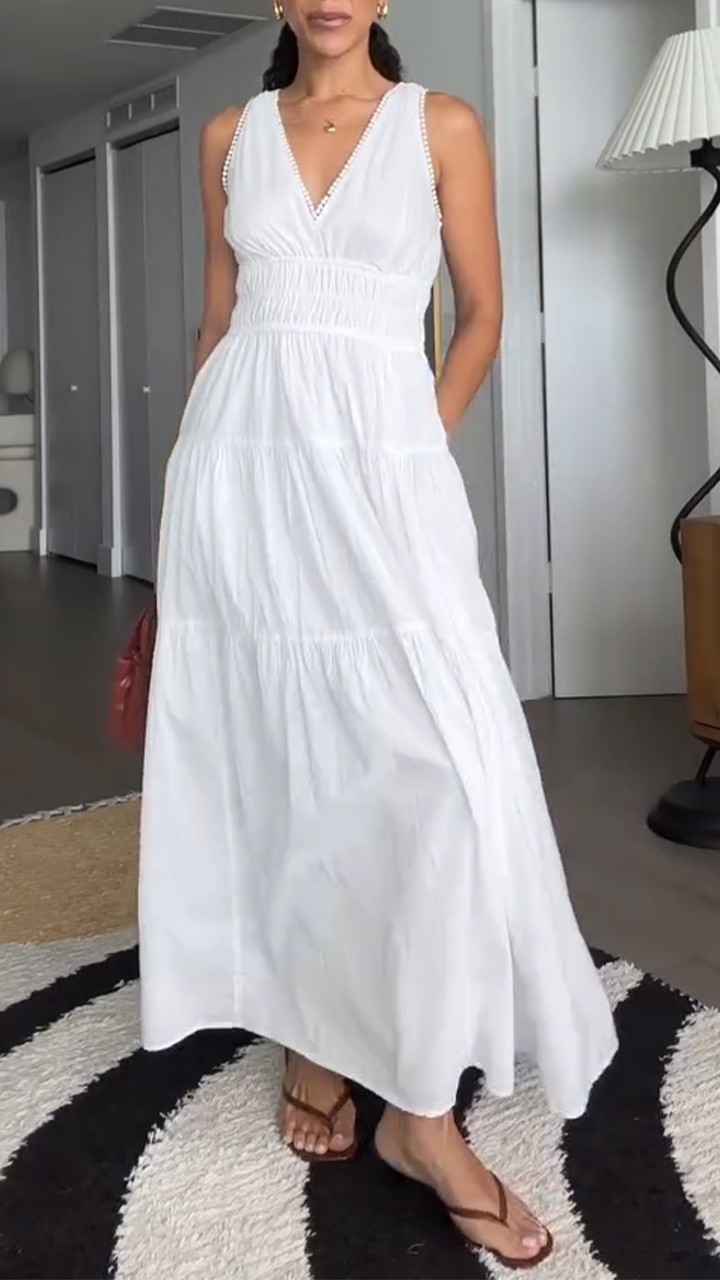 Women's V-neck Suspender A-line Holiday Temperament Dress