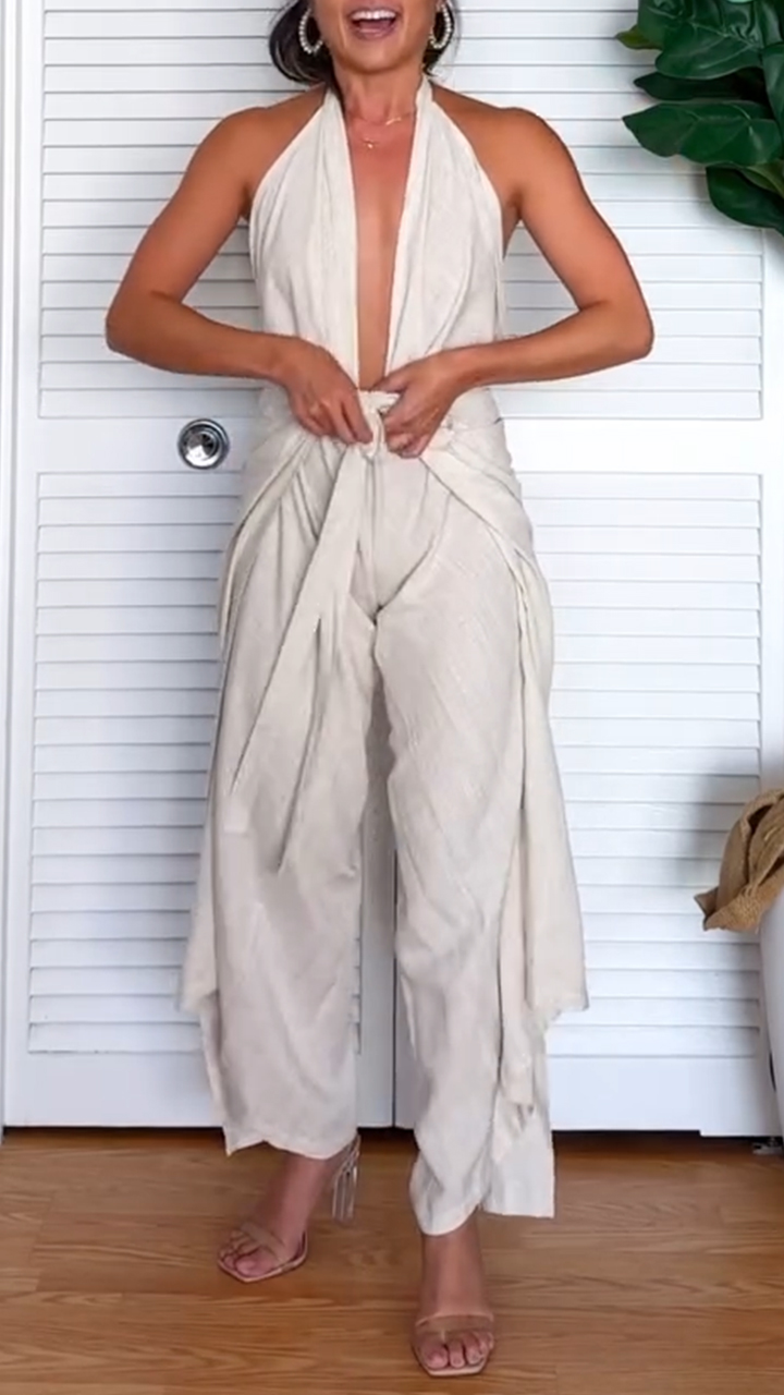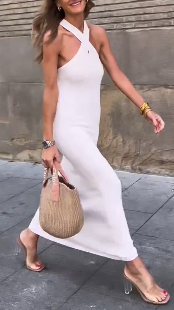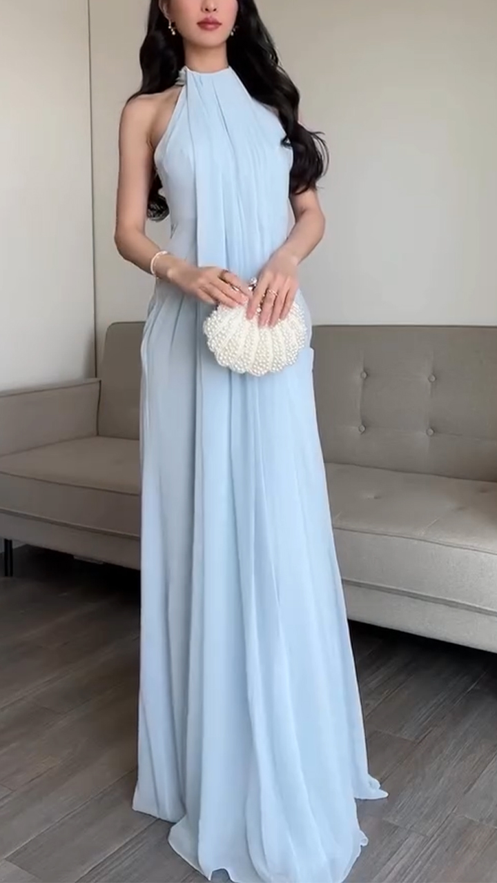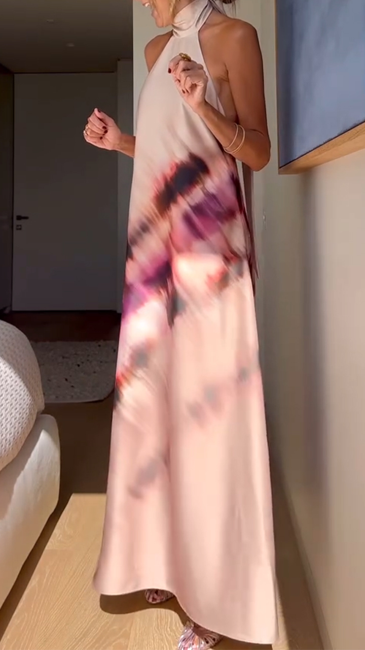 Women's Halter Neck Sleeveless Tie-dye Elegant Dress