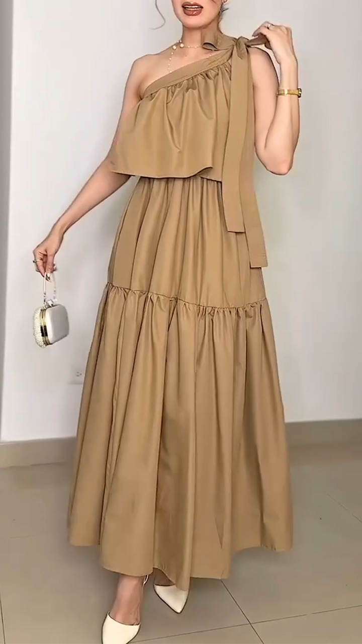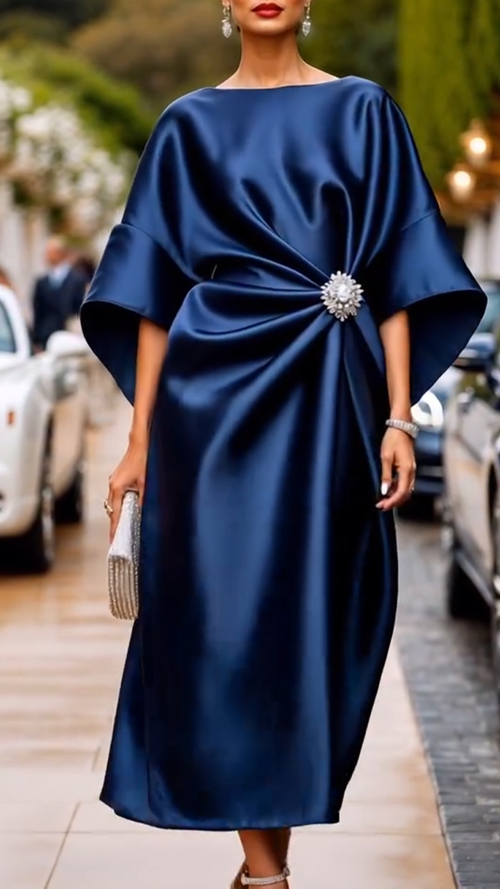 Ladies' Round Neck Solid Color Elegant Temperament Dinner Dress