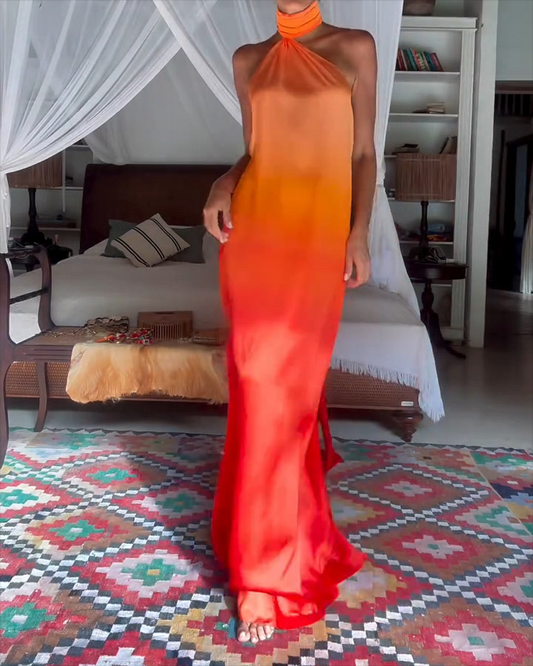 Women's Halter Neck Gradient Color Holiday Temperament Dress