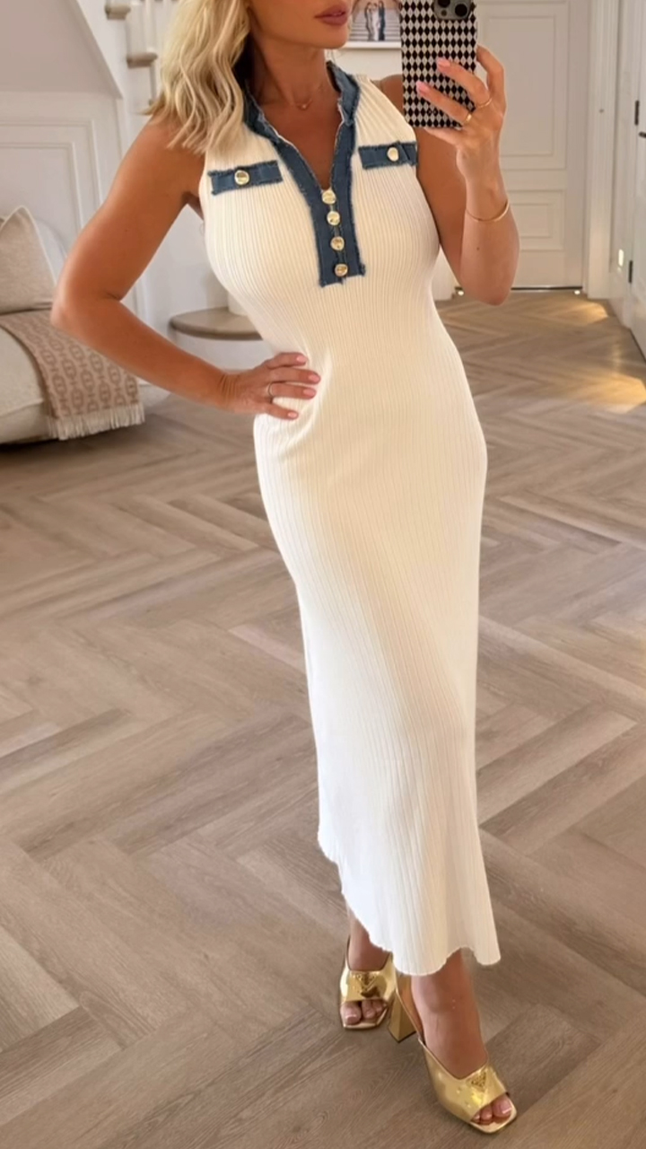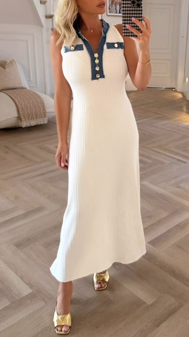 Women's Lapel Denim Collar Knitted Casual Dress