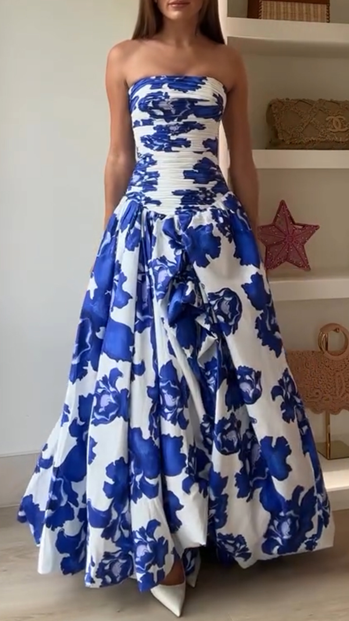 Women's Tube Top Large A-line Elegant Printed Dress