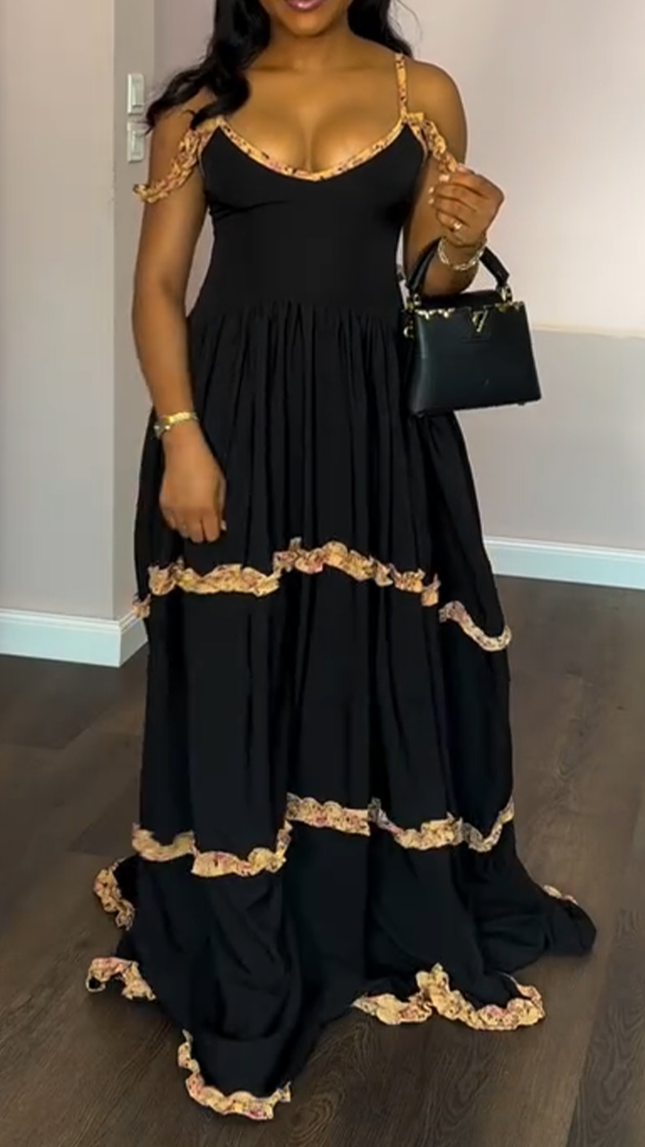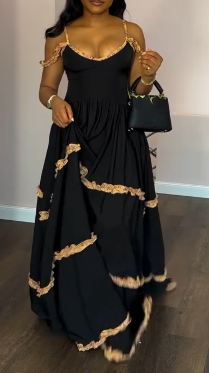 Ladies' Spaghetti Strap Patchwork Elegant Evening Dress
