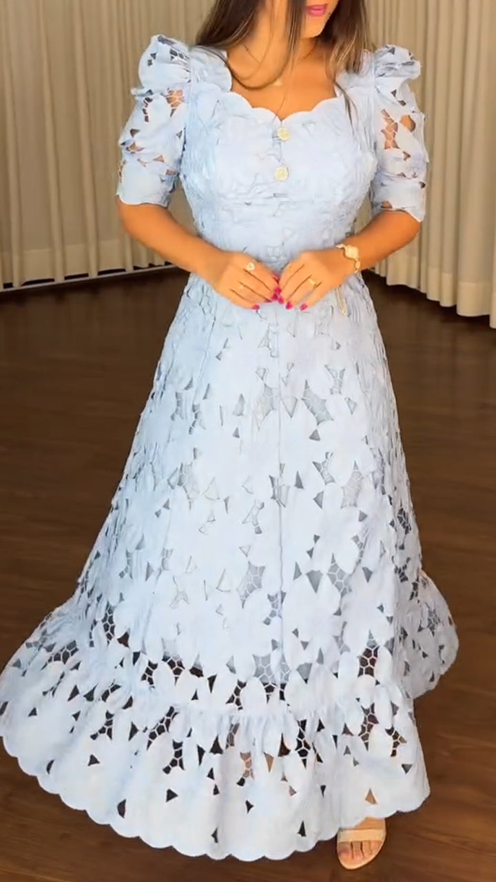 Ladies' One Collar Printed Hollow Solid Color Casual Dress
