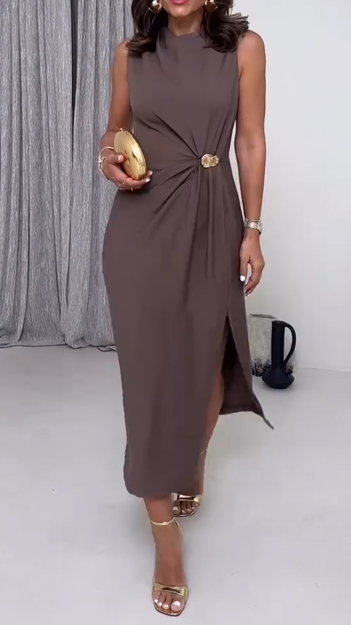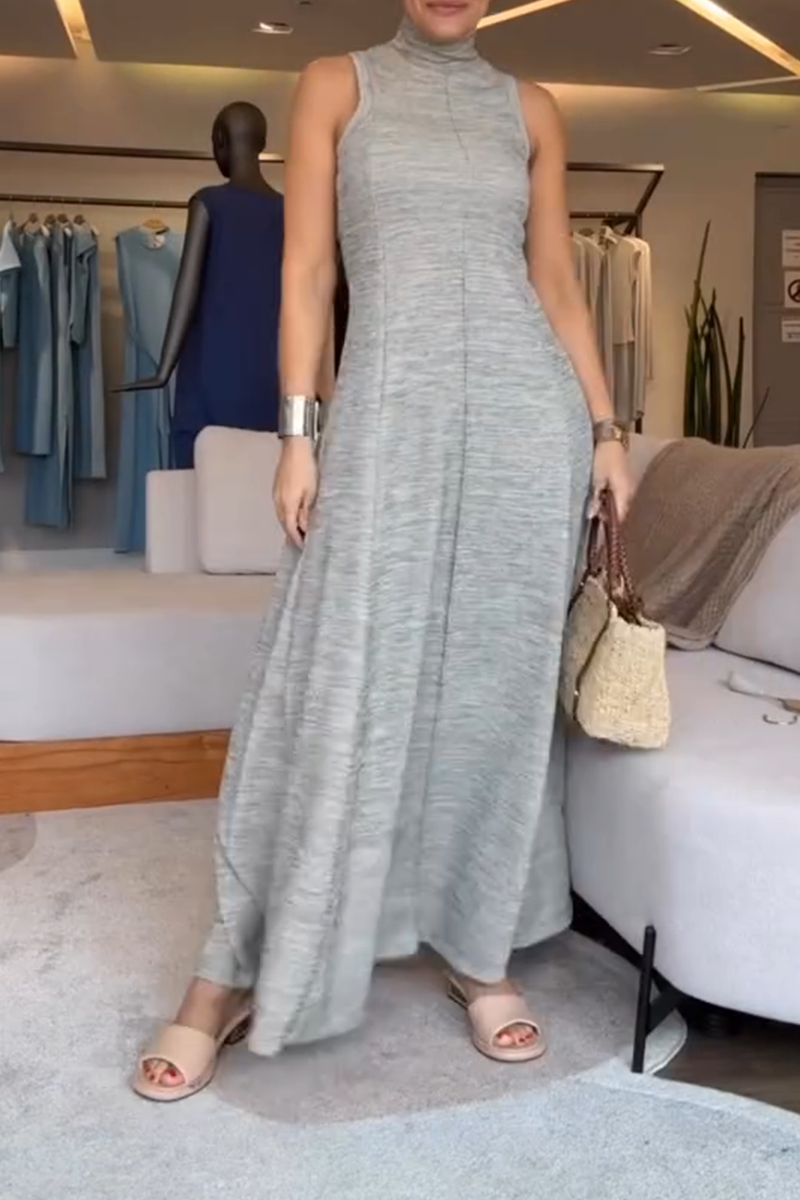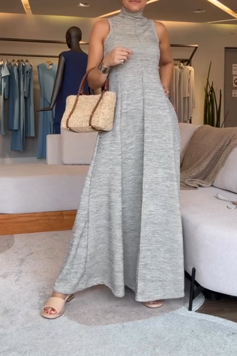 Women's Casual Simple Solid Color High Collar Sleeveless Long Dress
