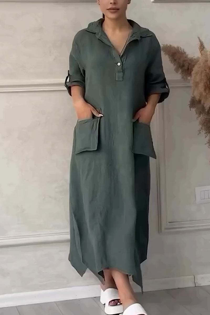 Women's Lapel Slit Long Casual Dress