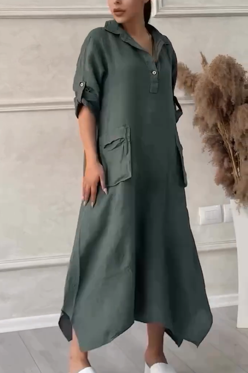 Women's Casual Lapel Pockets Asymmetric Hem Dress