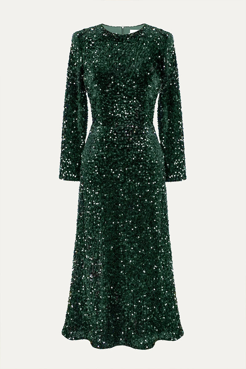 Women's Round Neck Long Sleeve Sequined Fur Stripe Fake Two Piece Party Dress