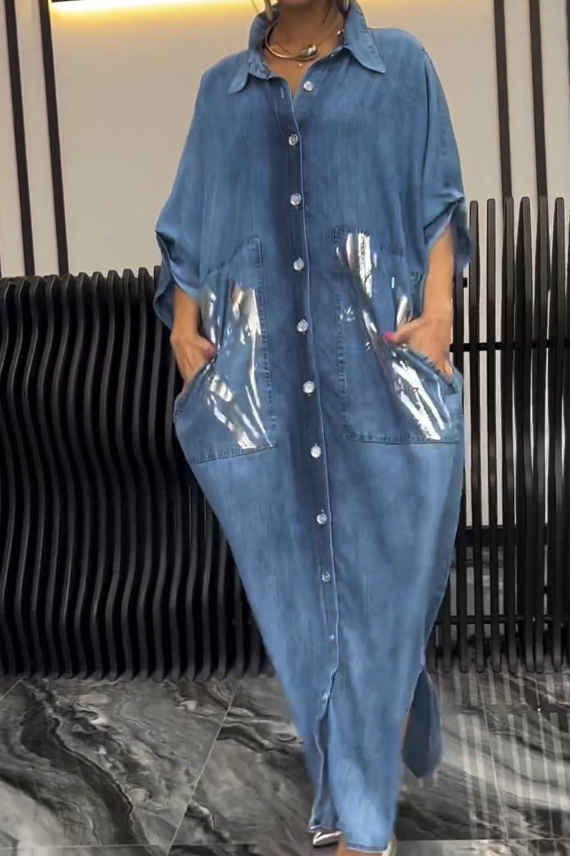 Women's Casual Lapel Pockets Asymmetric Hem Dress