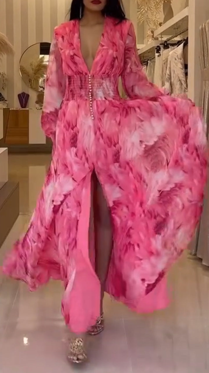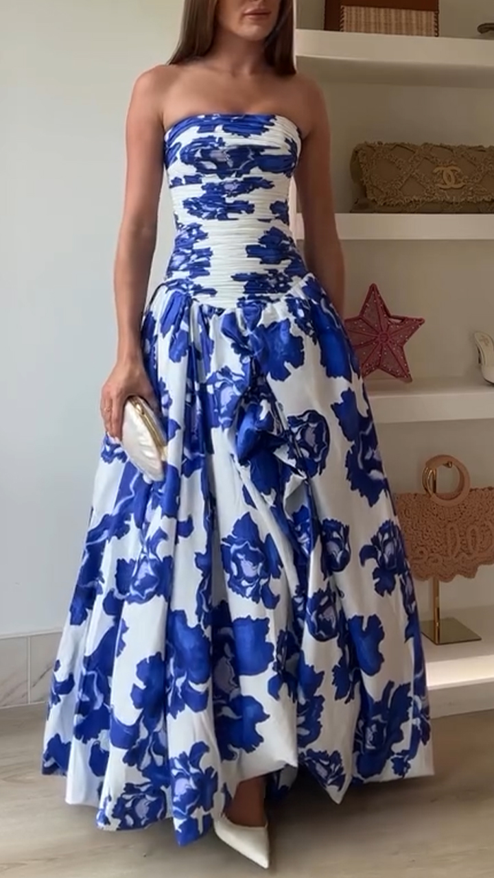 Ladies' Suspender Cross Strap Design with Printed Slit Temperament Dress