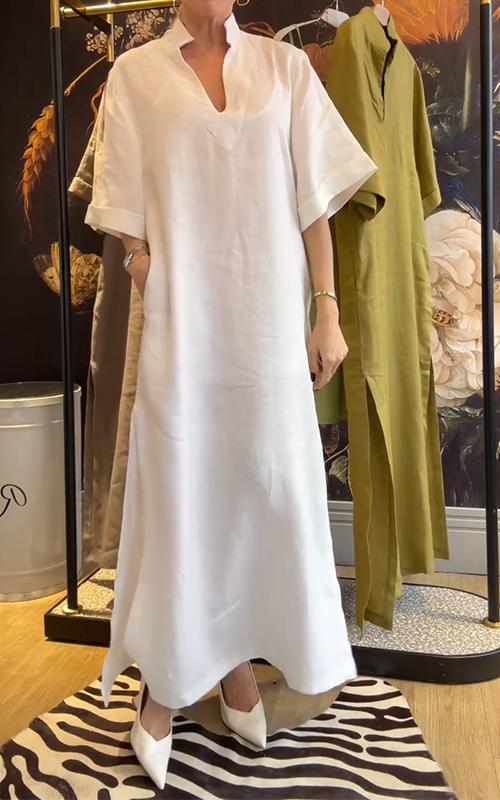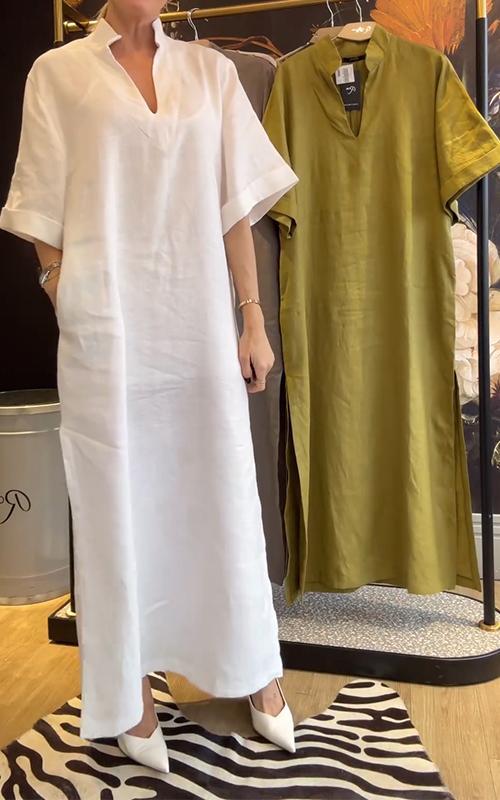 Women Summer Formal Linen Dress Solid color cotton and linen dress